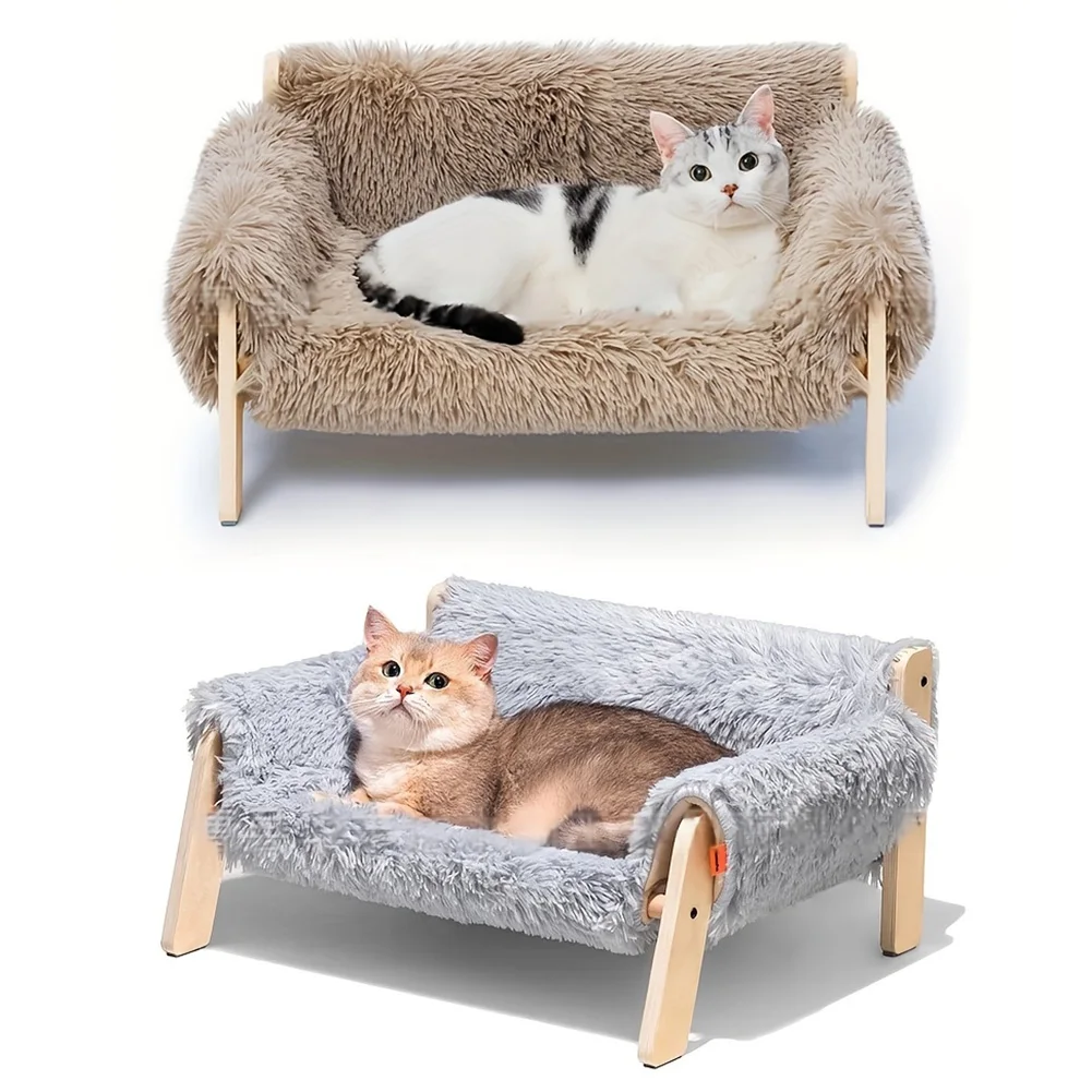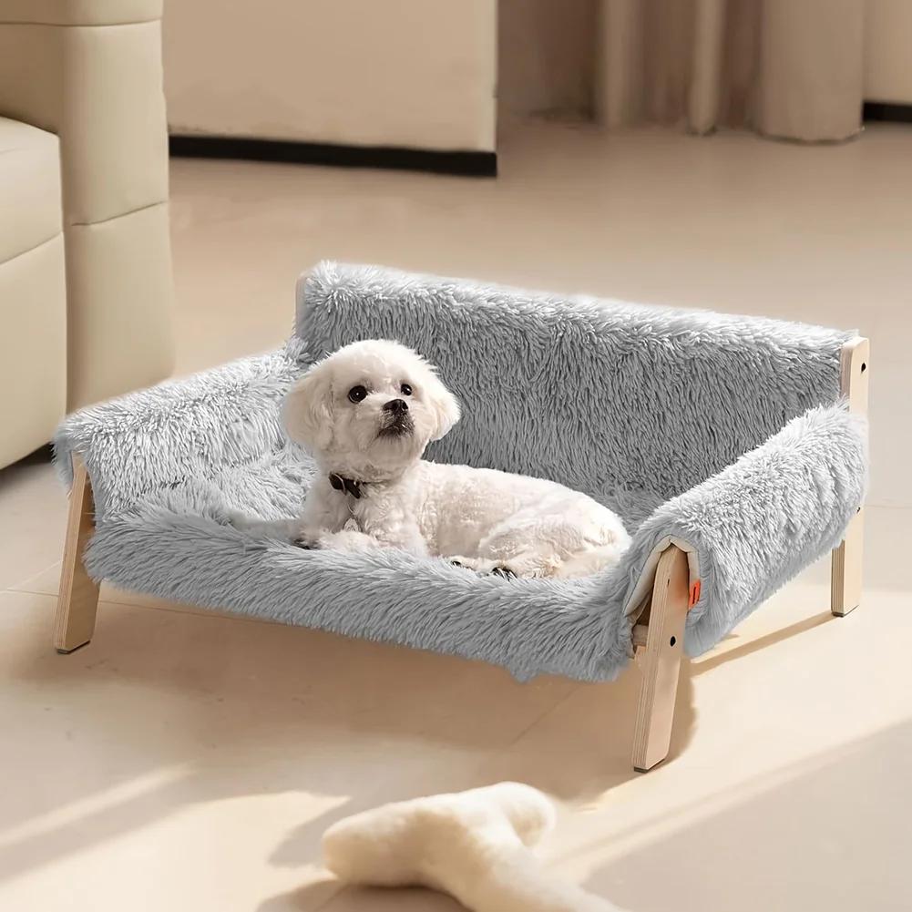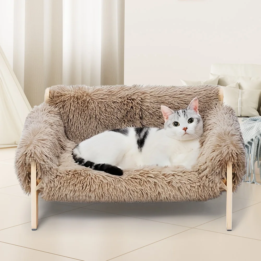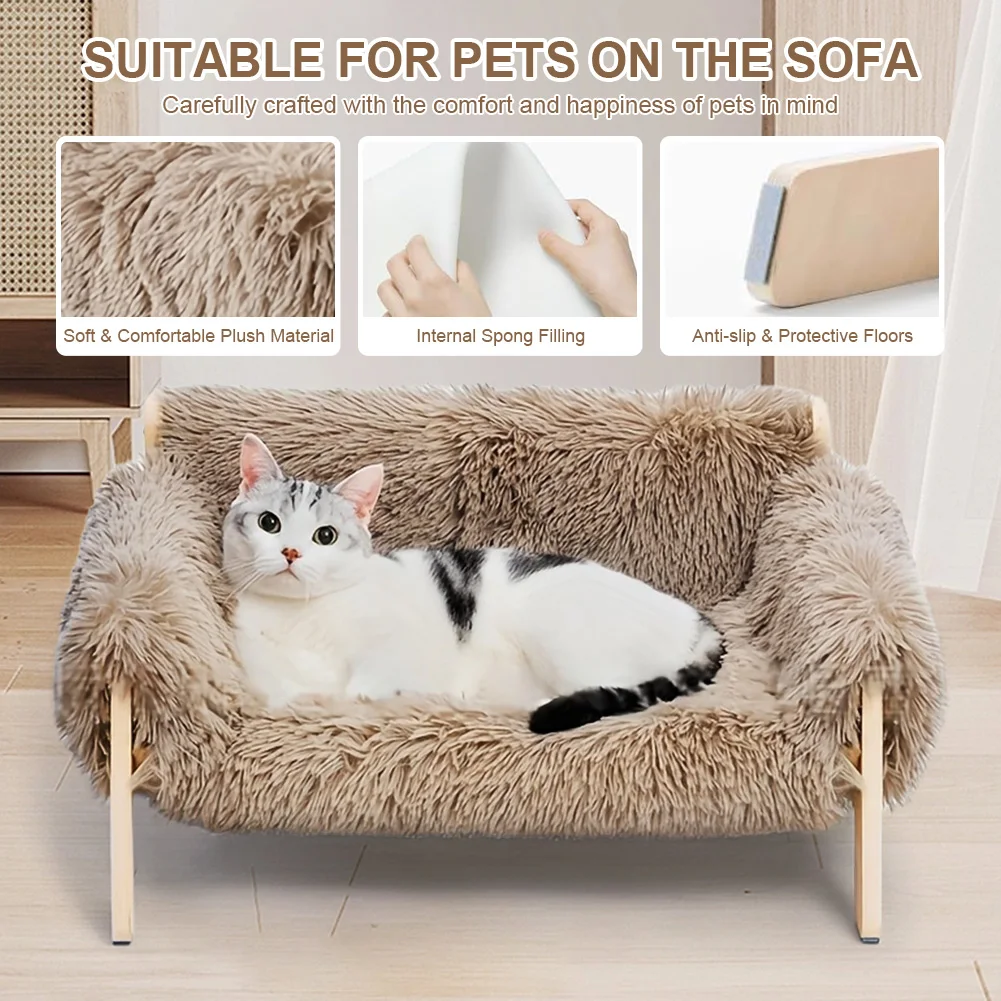 Elevated Plush Pet Sofa with Removable Mattress Cover Pet Sofa Lounging Bed Wooden-Leg Sofa Plush Bed Suitable for Kitty Puppy Or Small/Medium Animal