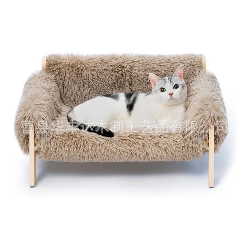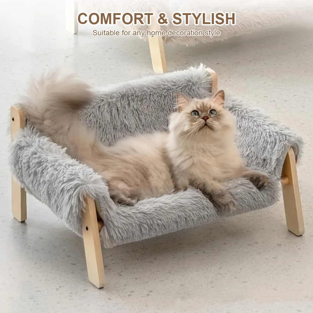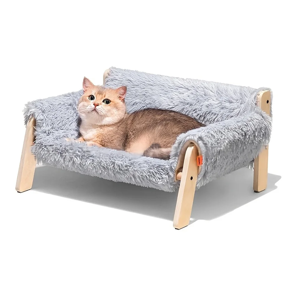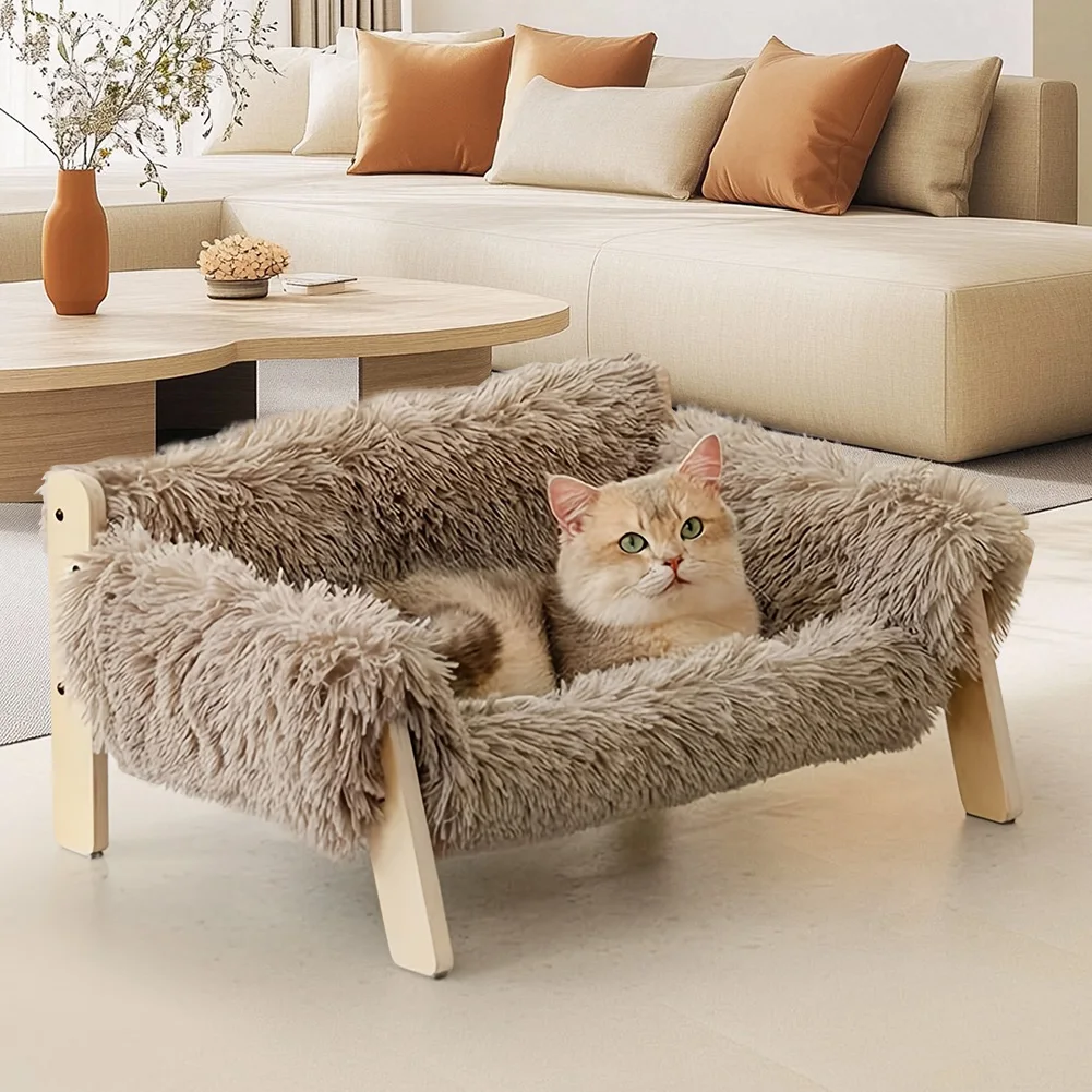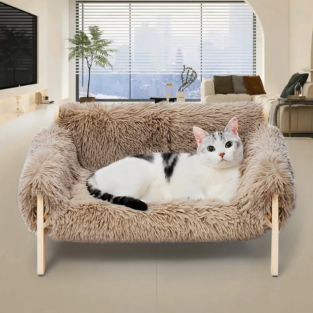 Elevated Plush Pet Sofa with Removable Mattress Cover Pet Sofa Lounging Bed Wooden-Leg Sofa Plush Bed Suitable for Kitty Puppy Or Small/Medium Animal