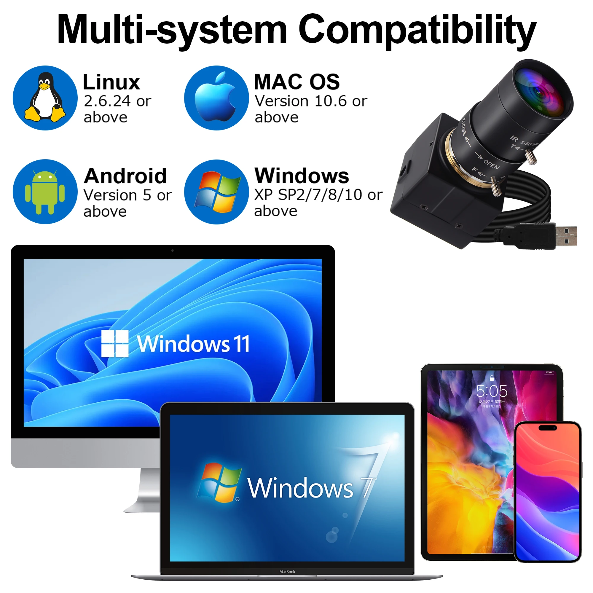 This 2448P usb webcam is very easy to set and without any complex driver install. Wide Compatibility for Third-party software and operation systems: Compatible with Skype, MSN, Facebook, Youtube Live Streaming etc instant messaging applications. Fits for multi-operations including Windows xp / 7/8/10/11, Mac, Linux and Android