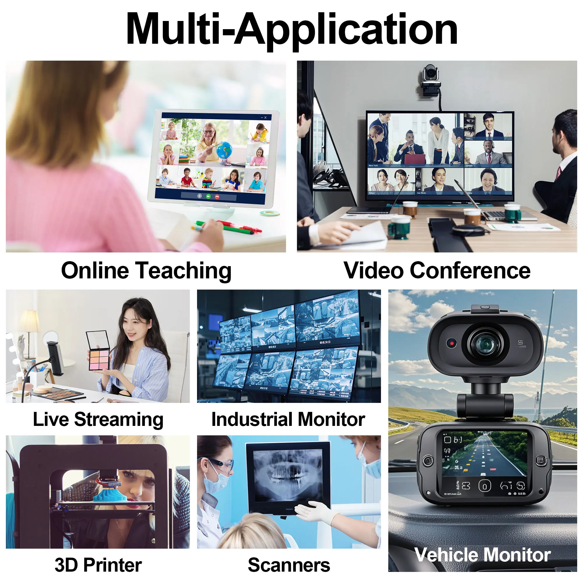machinery equipment, all-in-one machine, POS equipment, STB, smart box TV BOX, advisement player, LED display, automatic vending machine, safety box, notebook, video door phone, MID, Tablet external, evaluator, Medical Equipment, on-the-spot law enforcement, door bell and button system, cat-eye system, simple security system, teaching system, Interactive system, automobile data recorder. Project video capture, credit card machine, attendance machine, Voting system, High speed video shooting Device, exam system, Driving learning system, Industrial camera, biological microscope, box inside surveillance, micro HD surveillance, endoscope, Medical auxiliary equipment, etc.