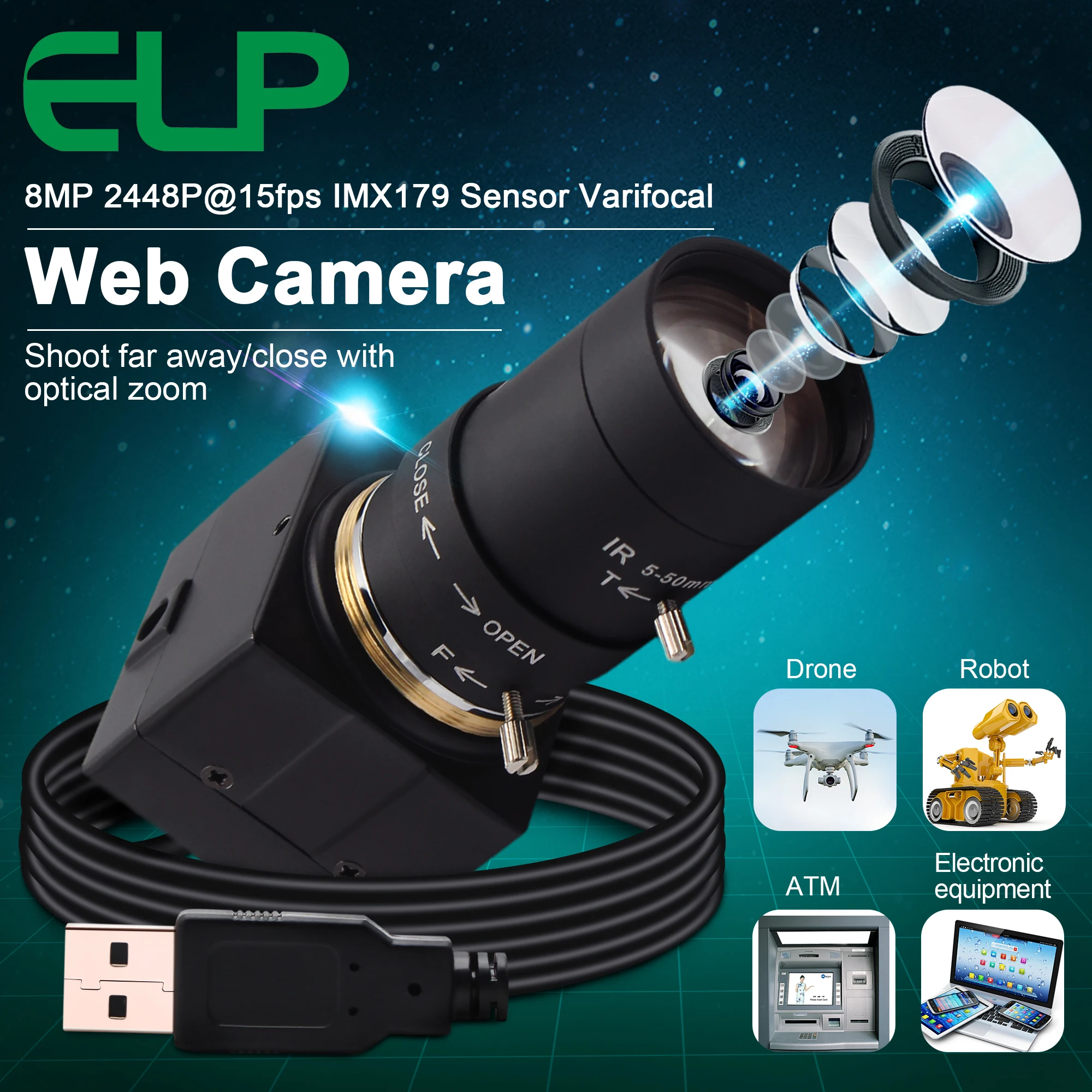 ELP-USB8MP02G-SFV(5-50mm) (5-50mm varifocus lens)