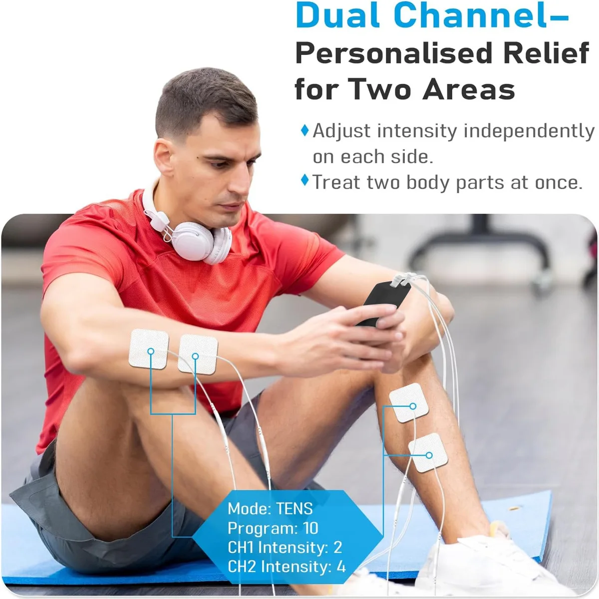 3.Dual output channels, suitable for massaging multiple parts of the body, such as waist, abdomen, legs, arms, shoulders, etc., taking care of health in all aspects.