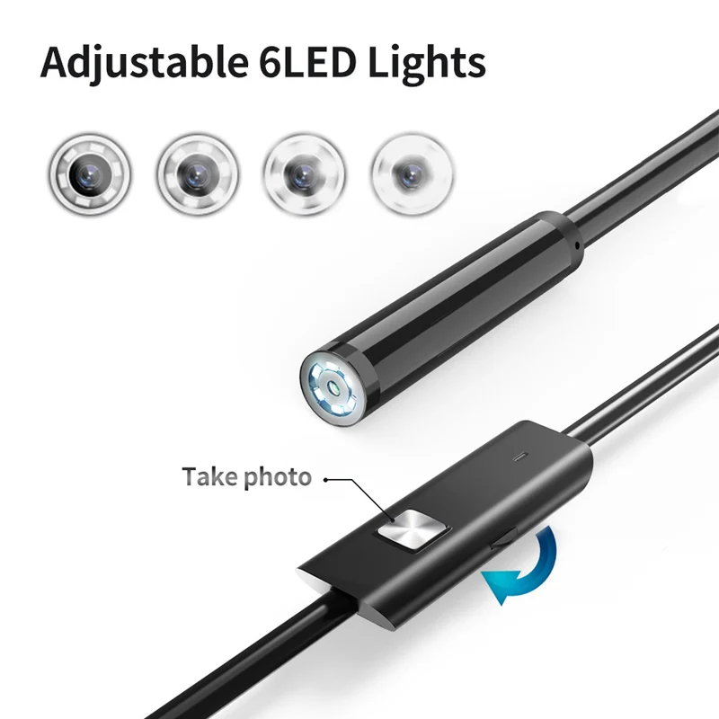 • 6 LED Lights :The Endoscope Camera USB-C Borescope Inspection Camera comes with 6 LED lights that provide bright and clear illumination, making it easy to see inside dark spaces.