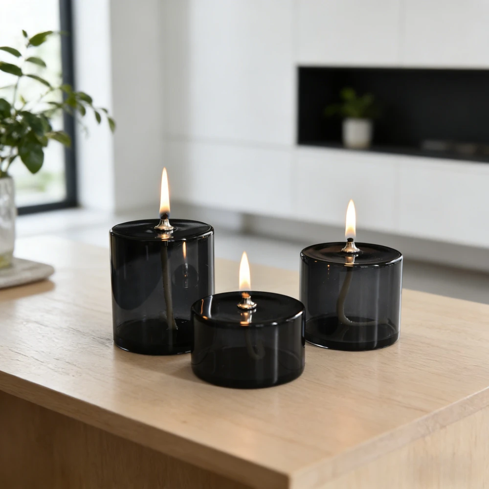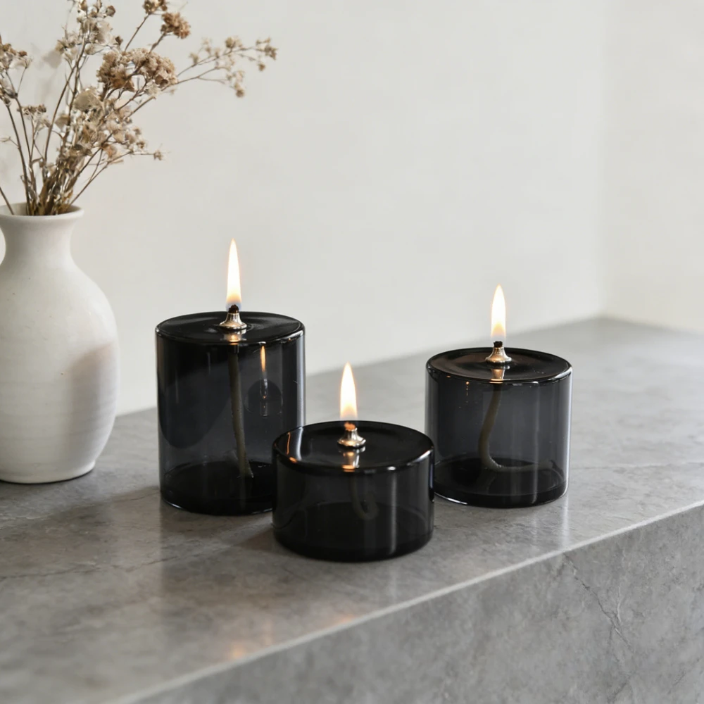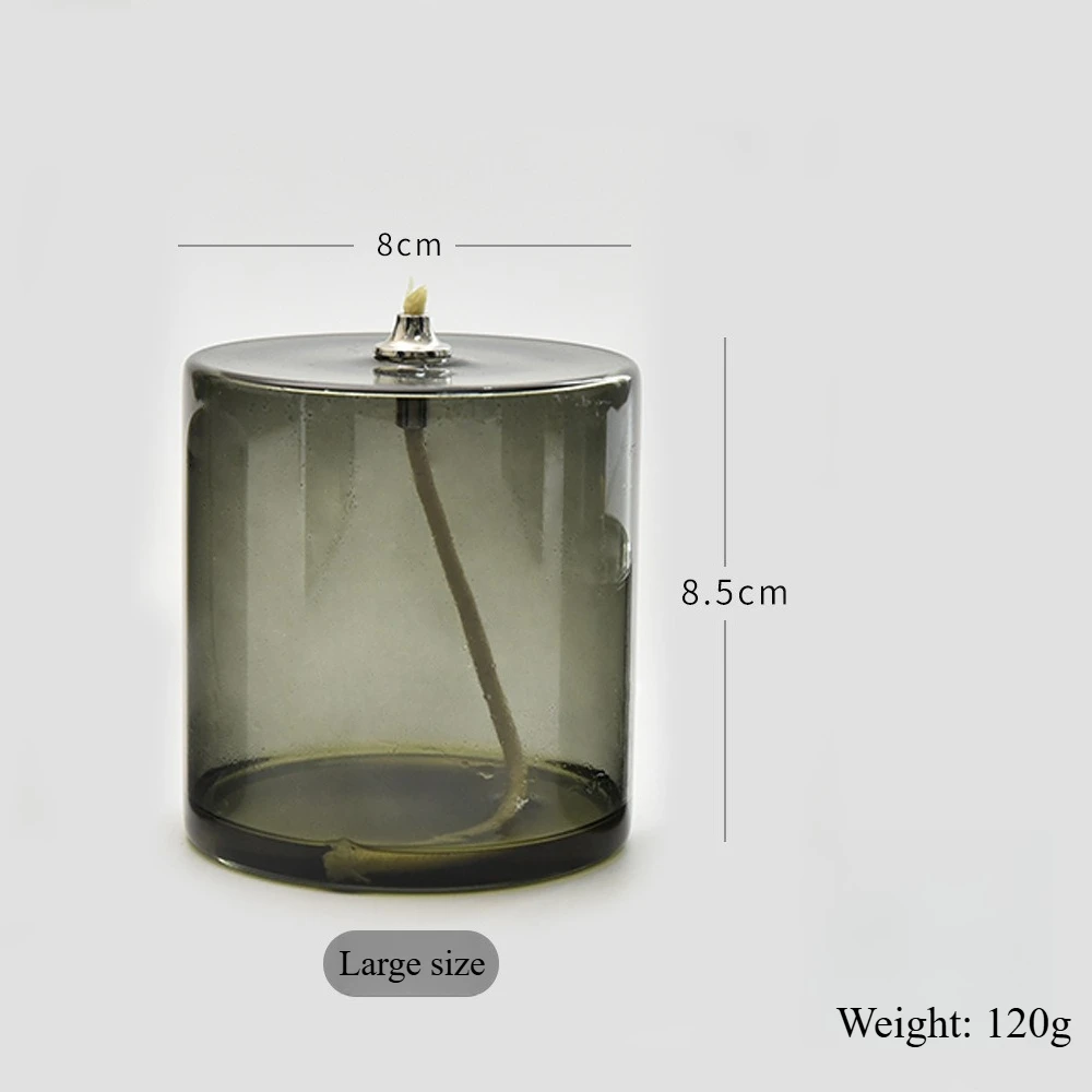 Product Name: 1PC Rustic Grey Green Cylindrical Transparent Glass Candlestick Oil Lamp with Wick Table Candle Rustic Home Decoration