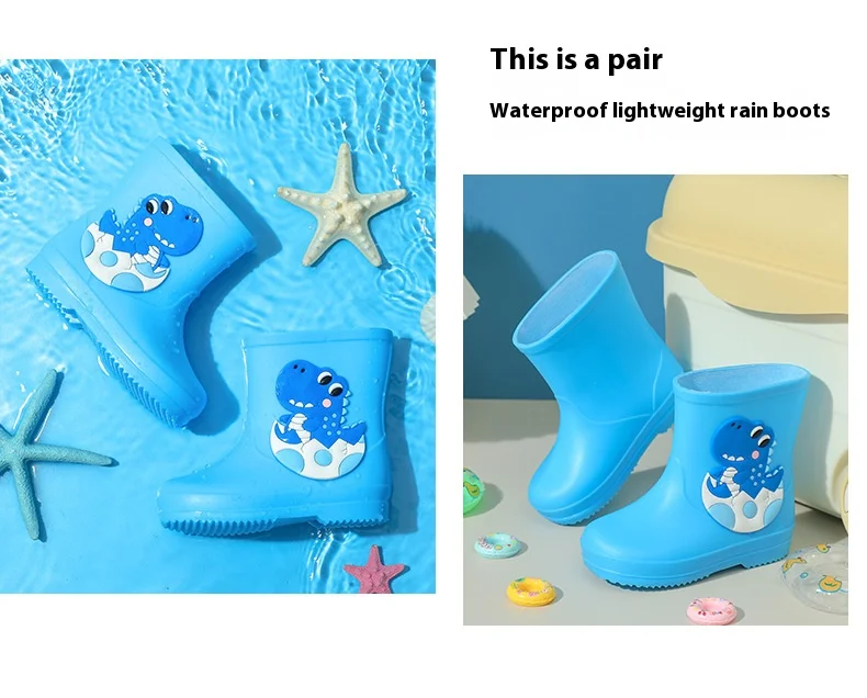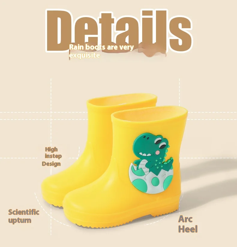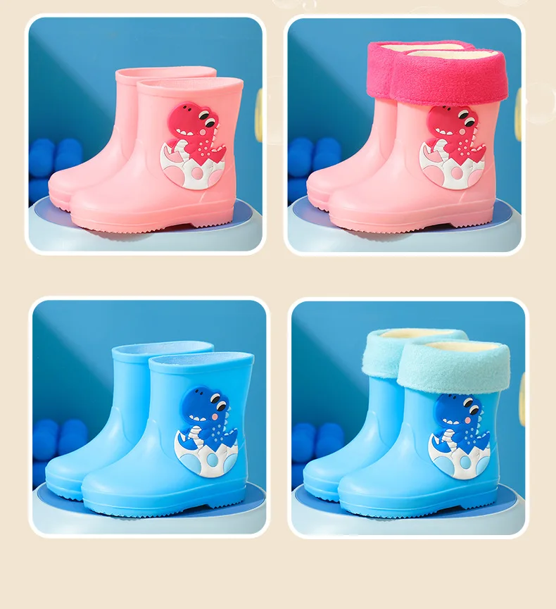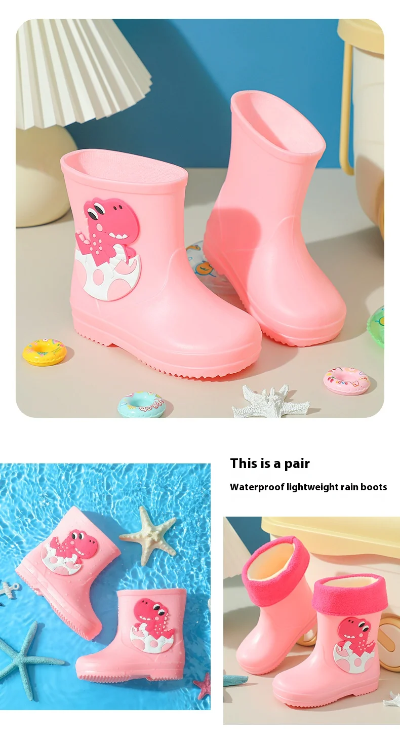 Evshine Children Cute Rain Boots Outdoor Fashion Anti-slip Kids Dinosaur Rain Shoes Boys Girls Lovely Cartoon Waterproof Boots