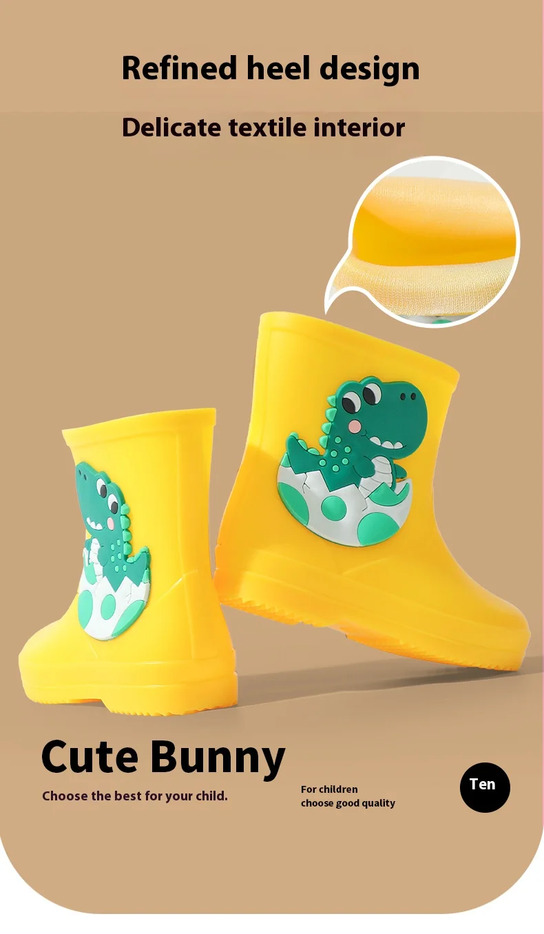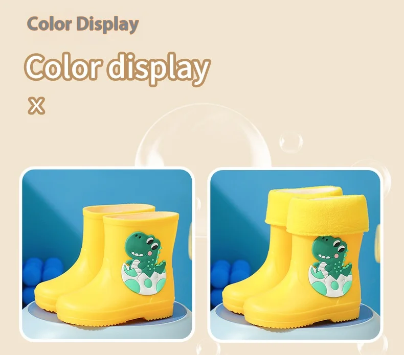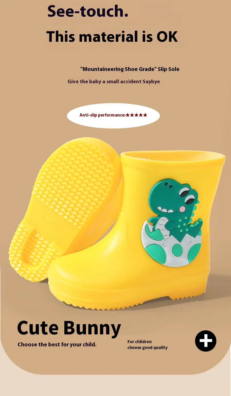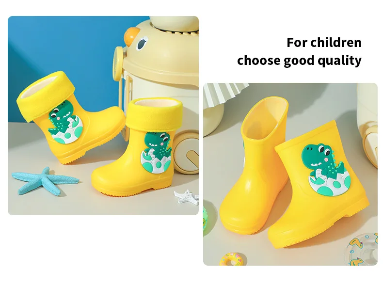 Evshine Children Cute Rain Boots Outdoor Fashion Anti-slip Kids Dinosaur Rain Shoes Boys Girls Lovely Cartoon Waterproof Boots
