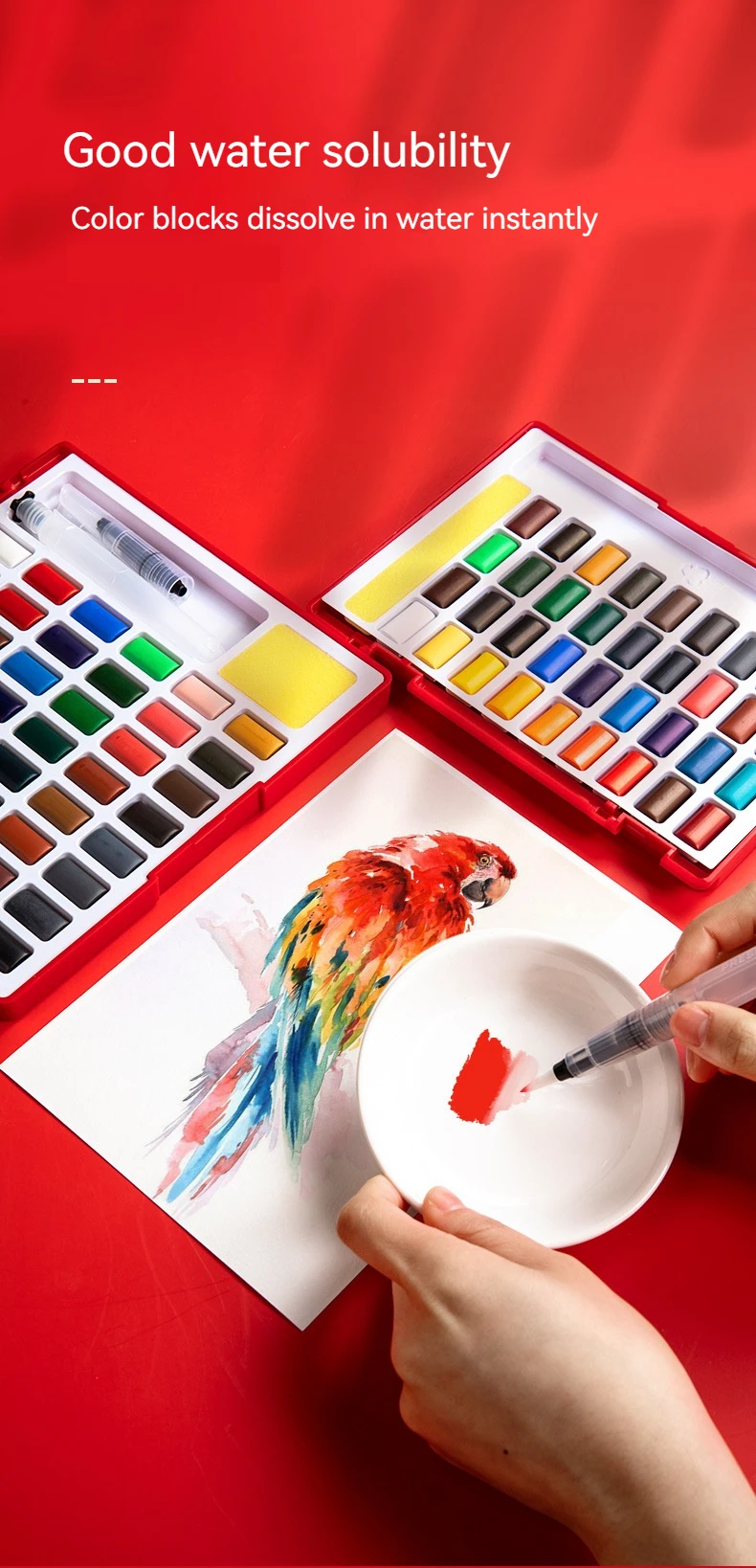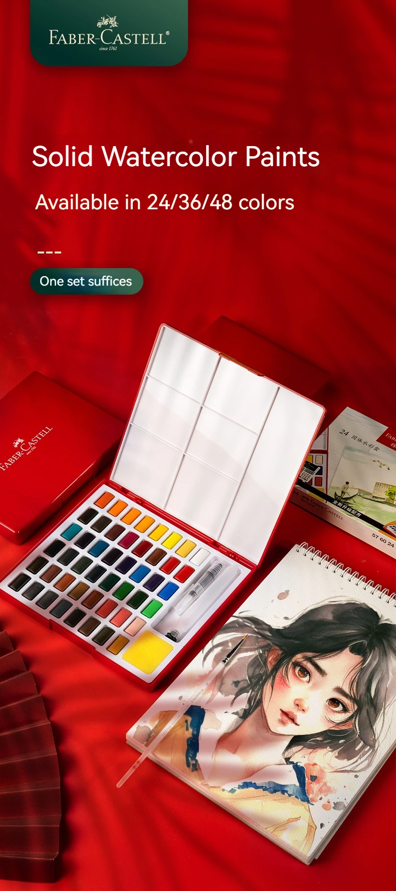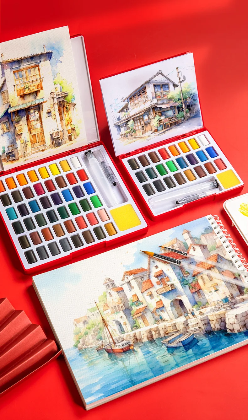 12/24/36/48 Colors Watercolor Paint Set with Water Brush Pens Portable Case Sponge Metallic Color Art Supplies, for Artists, Amateur Hobbyists and Painting Lovers
