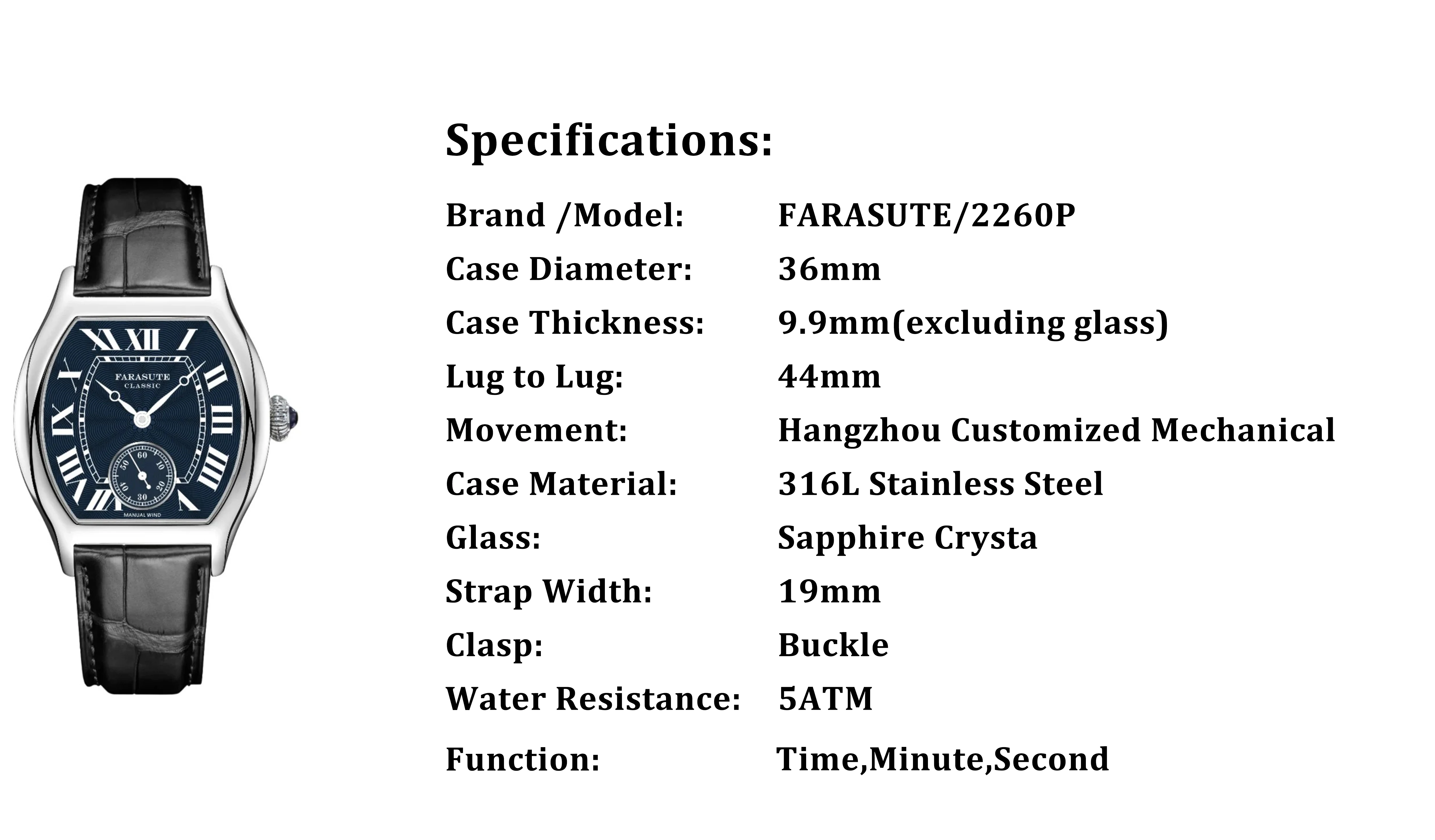 FARASUTE 36mm Retro Hangzhou Customized Manual Mechanical Movement Wristwatches Sapphire 5Bar Waterproof Watch Men reloj hombre