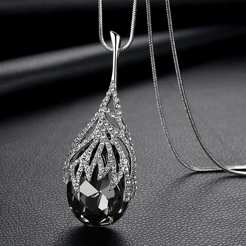 Long Necklaces for Women Fashion Gray Crystal Choker Collier Femme Statement Necklaces & Pendants Accessories