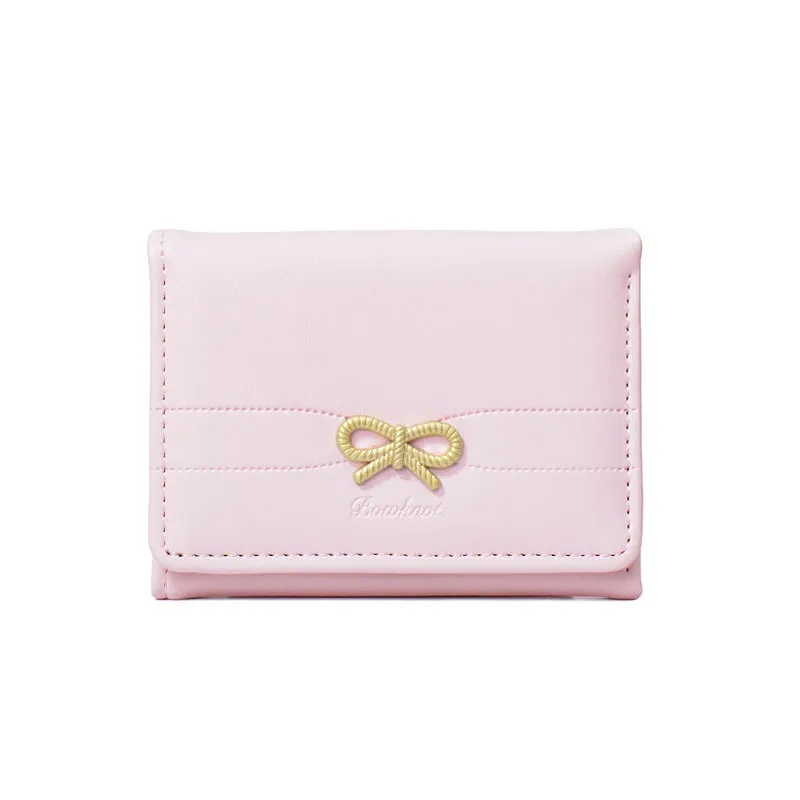 Fashion Wallets Girls Cute Bow Small Wallet Aesthetic Card Holder Classic Three Fold Purse For Women Student Simple Coin Pouch