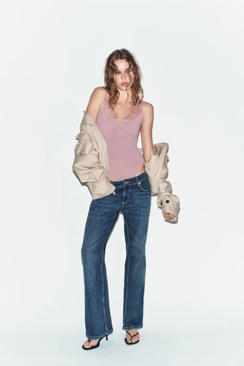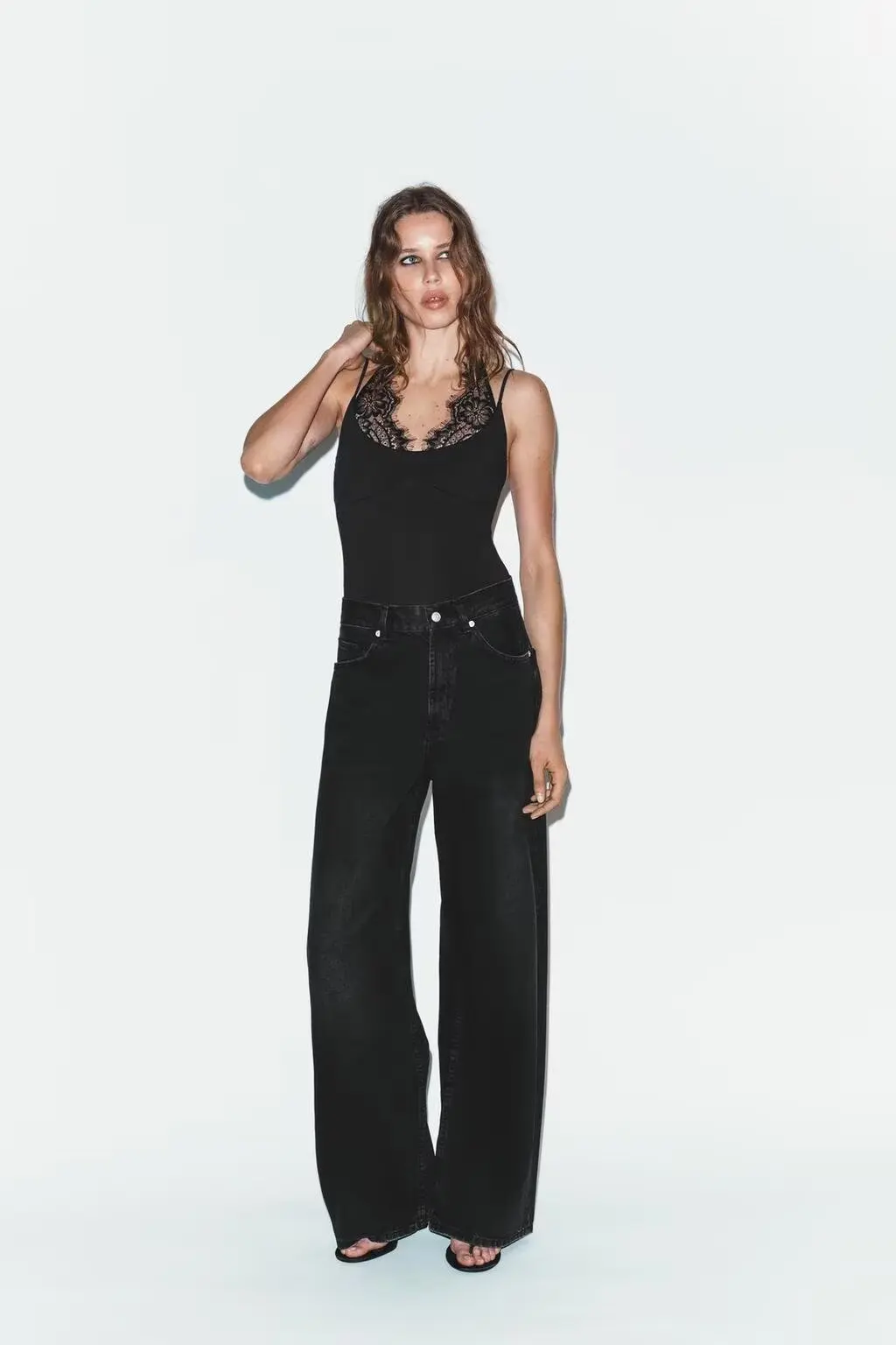 The outfit features a versatile lace collar that adds a touch of elegance and femininity to the overall look. It can be dressed up or down depending on the occasion.
