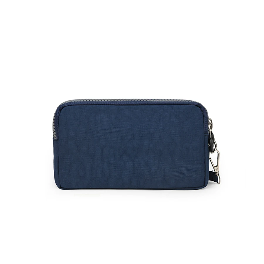 Very nice, seems durable. It has 3 compartments, each with its own zipper. It’s not very big. It has a strap that can be attached with a hook and used as a small bag.