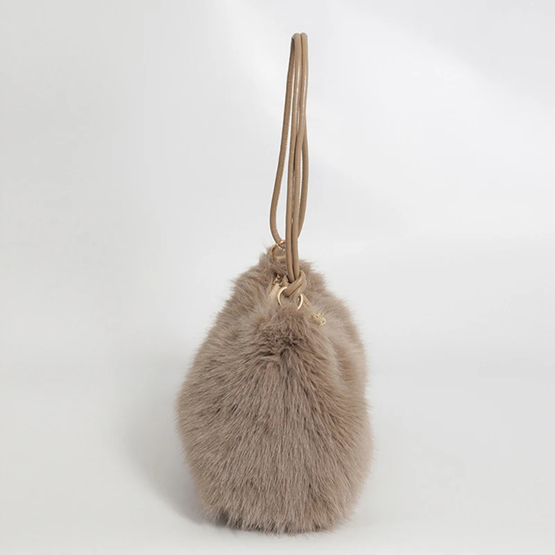The handbag is overall beautiful, well-made, with faux fur as shown in the photo. One star was deducted for the quality of the handles; the yellow hardware is of poor quality, which is not visible in the photo. The handles can be removed and the bag can be carried as a clutch.