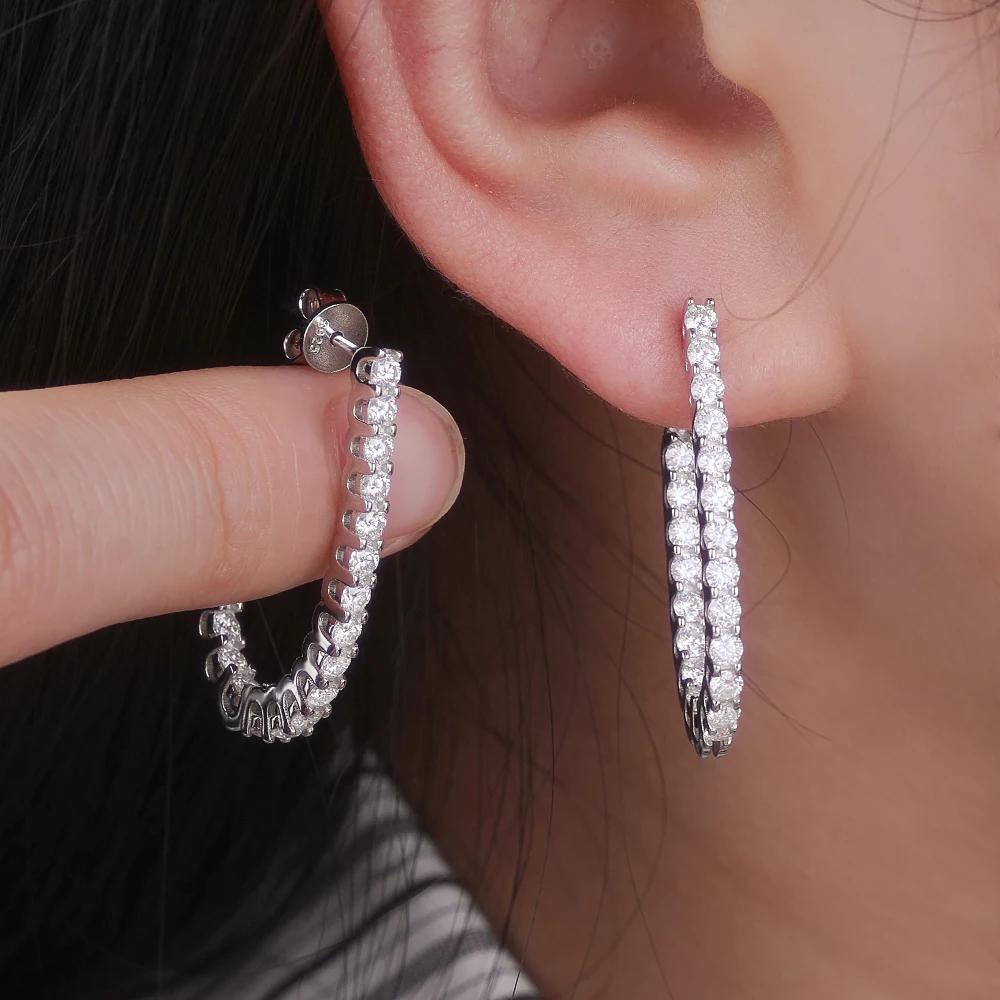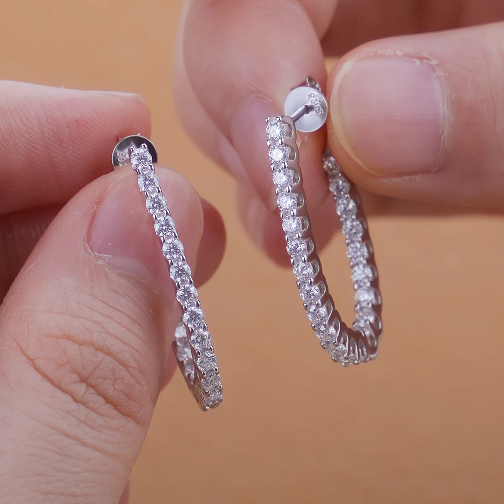 FEOBUR 1.76CT All Moissanite Hoop Earrings for Women Pure 925 Silver Certified Sparkling Lab Diamond Stud Earring Wedding Jewelry