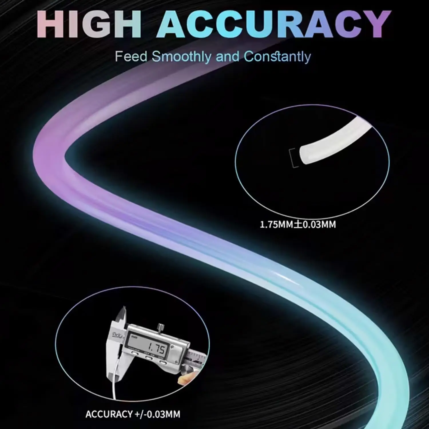 Precision Diameter & Tangle-Free Design: Each filament is produced with a strict ±0.02mm tolerance, ensuring stable extrusion and consistent color. The tangle-free spool guarantees smooth feeding and perfect layer adhesion, reducing print failure and wasted material