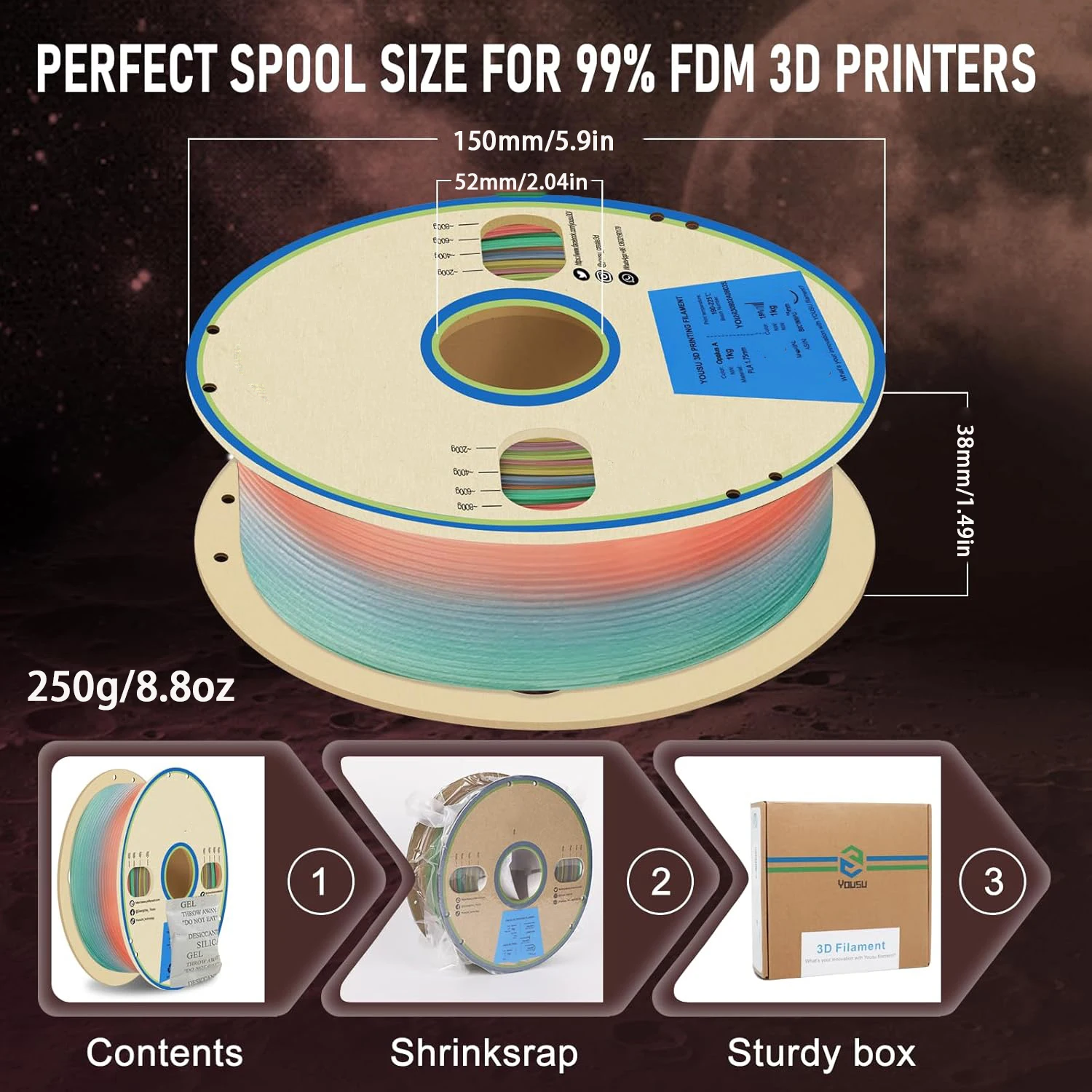 Compatible & Securely Vacuum-Packed: Compatible with most FDM 3D printers (1.75mm), our filament is vacuum-sealed with desiccant to prevent moisture and dust buildup, keeping it dry, clean, and clog-free for a flawless printing experience