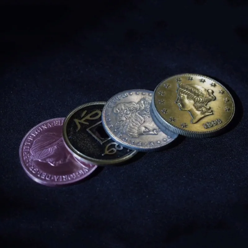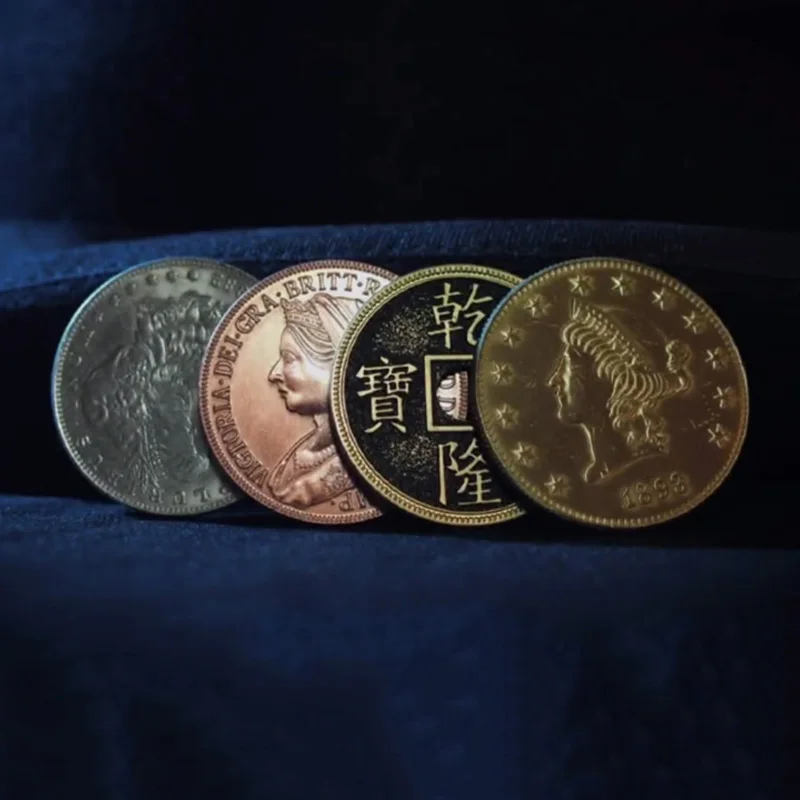 Distinct Coins: Four coins in different colors and nearly identical sizes, eliminating the suspicion of duplicate coins and making the routine more logical and convincing.