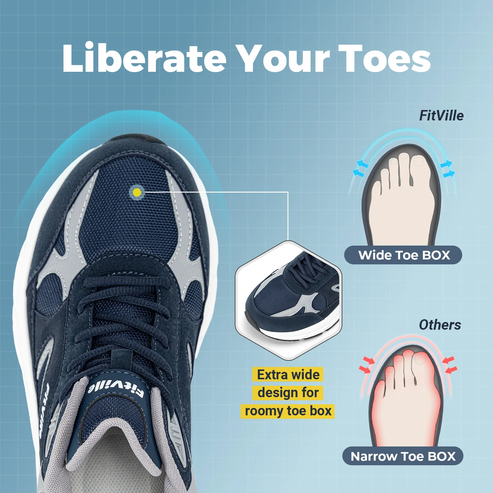✨ Wide Toe Box and High Instep Design: FitVille Rebound NEO V1 Walking Shoes feature a spacious toe box, providing ample space for your toes to stretch comfortably and reducing pressure on sensitive areas.
