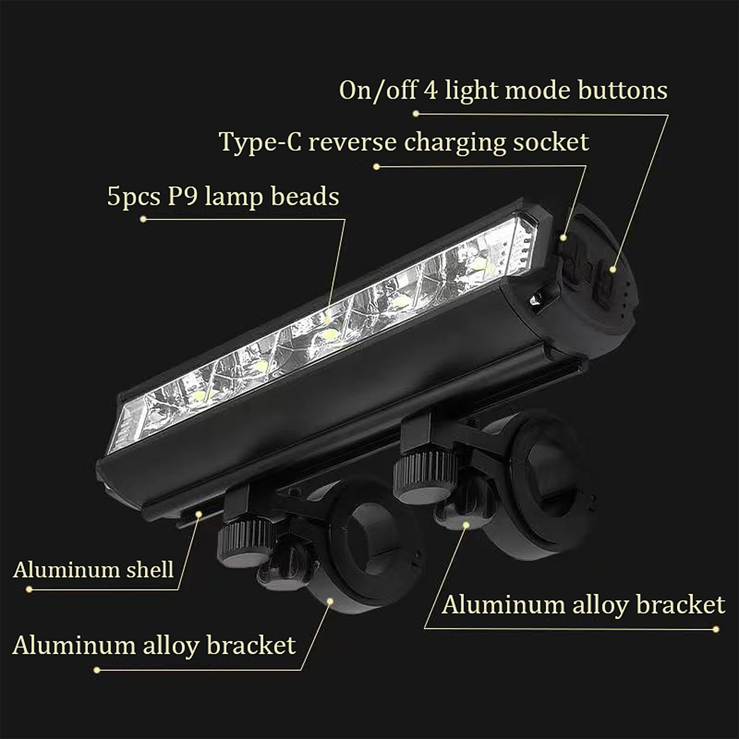 - Feature 7: 5LEDS Bicycle Headlight