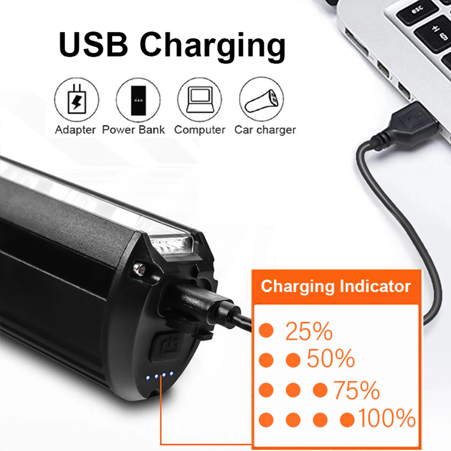 - Feature 5: USB Rechargeable Bicycle Headlight