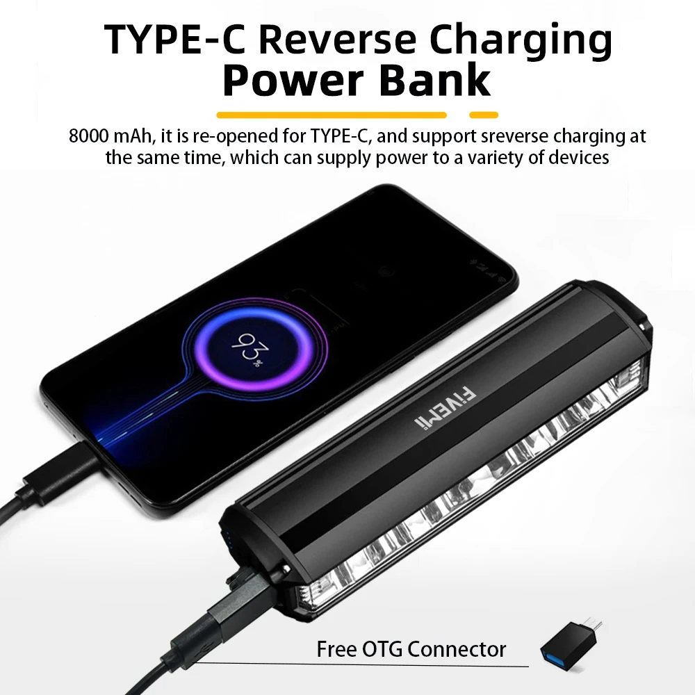 8000mAh Battery: The bicycle front light is equipped with a high-capacity battery, which allows you to ride for a long time without charging.