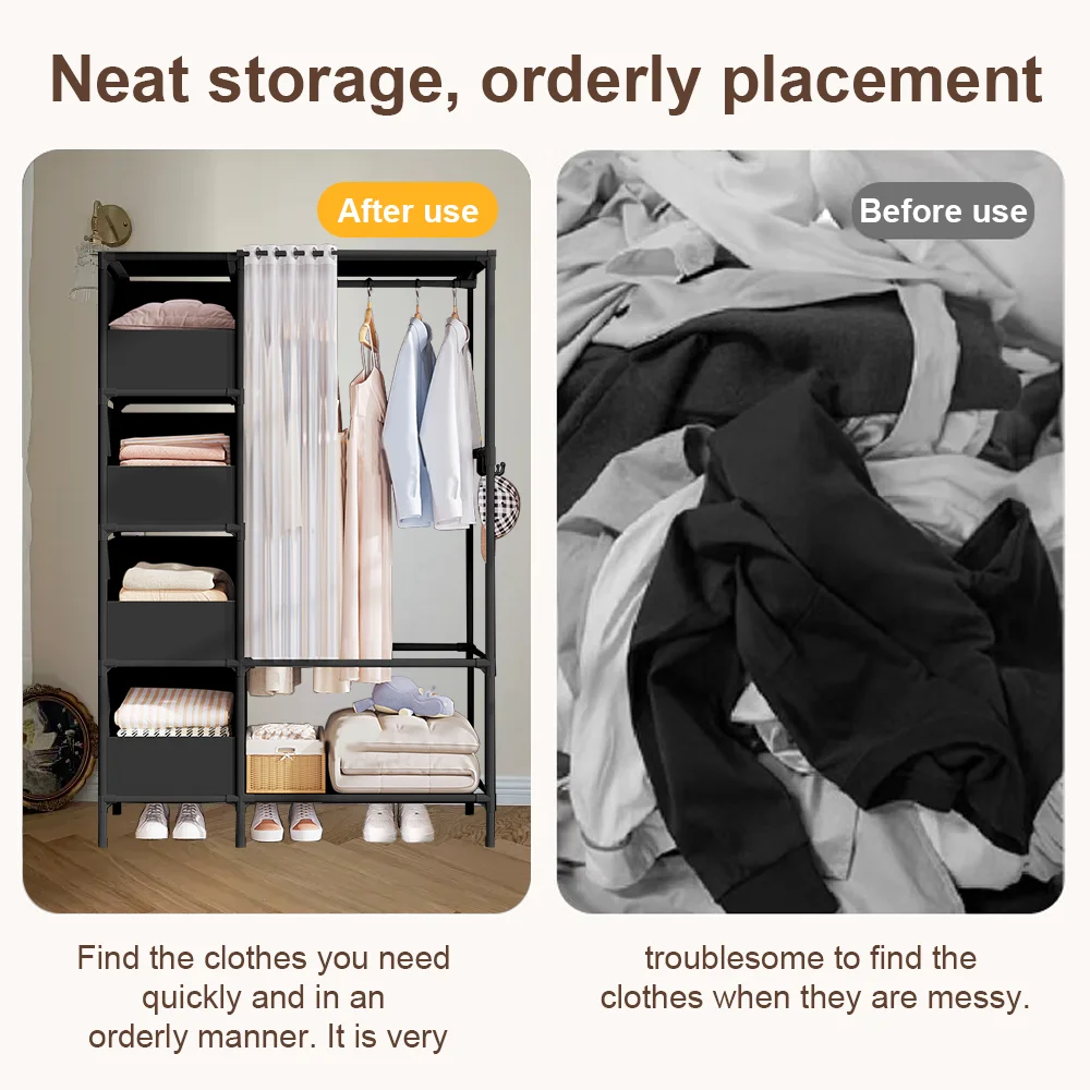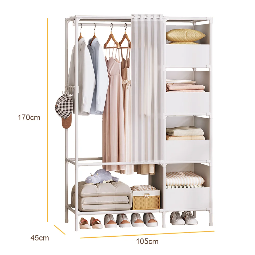 Floor-Standing Simple Wardrobes with Drawers Large Capacity Bedroom Open Storage Cabinet Dustproof Closet Rack