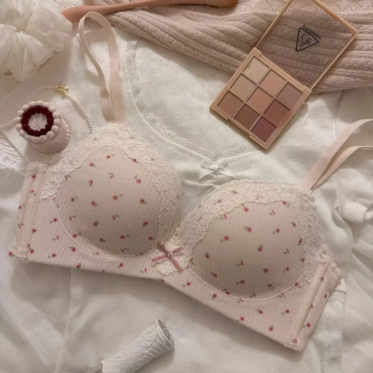 This bra set is free of steel rings, providing a gentle and comfortable fit for young women.