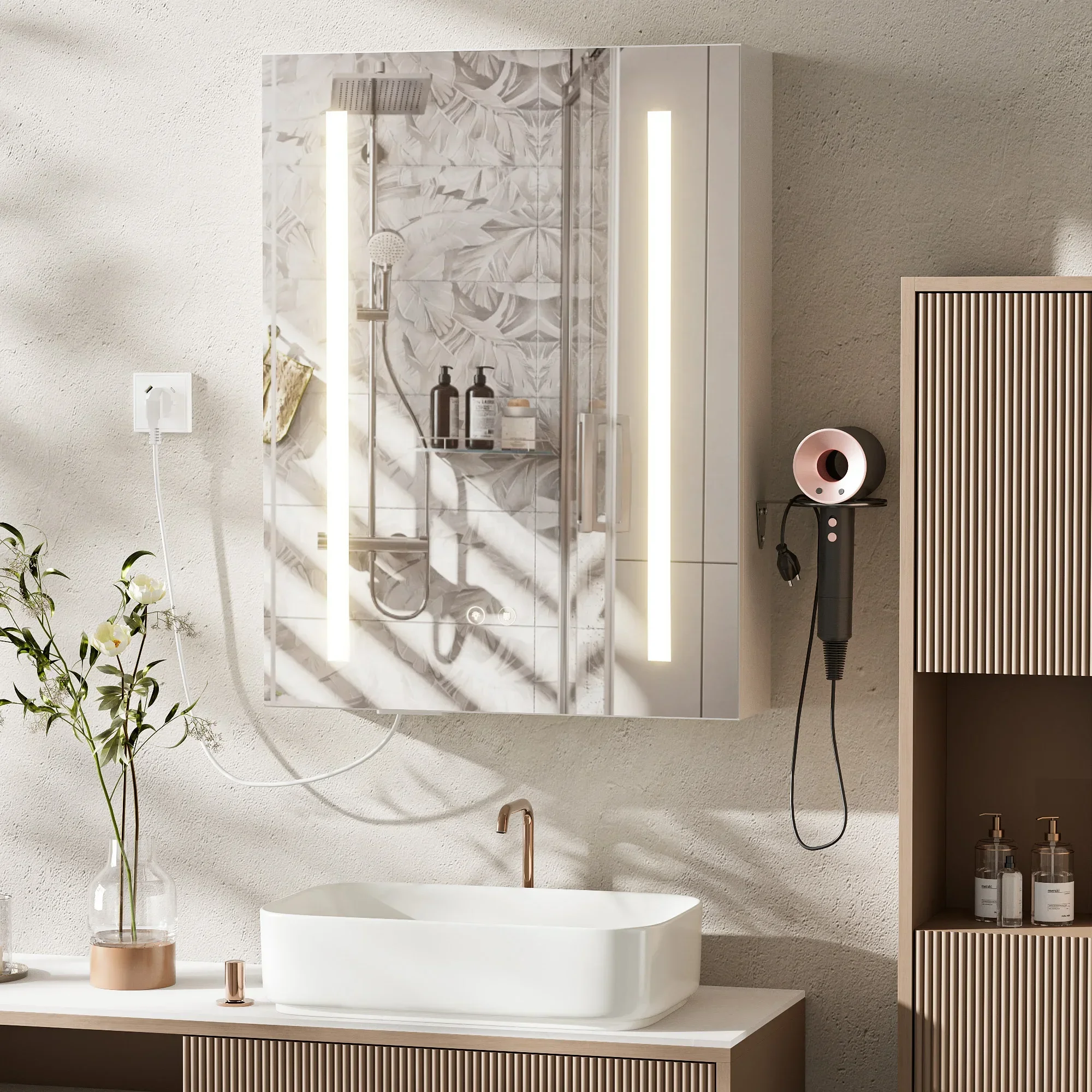 Wall-Mounted: Maximize your bathroom space with our wall-mounted mirror cabinet, featuring a cleverly designed hair dryer holder for easy access. The floating installation frees up counter space, while the adjustable interior shelves accommodate bottles and jars of all sizes. Ideal for small bathrooms, this sleek and practical cabinet keeps essentials organized and within reach.