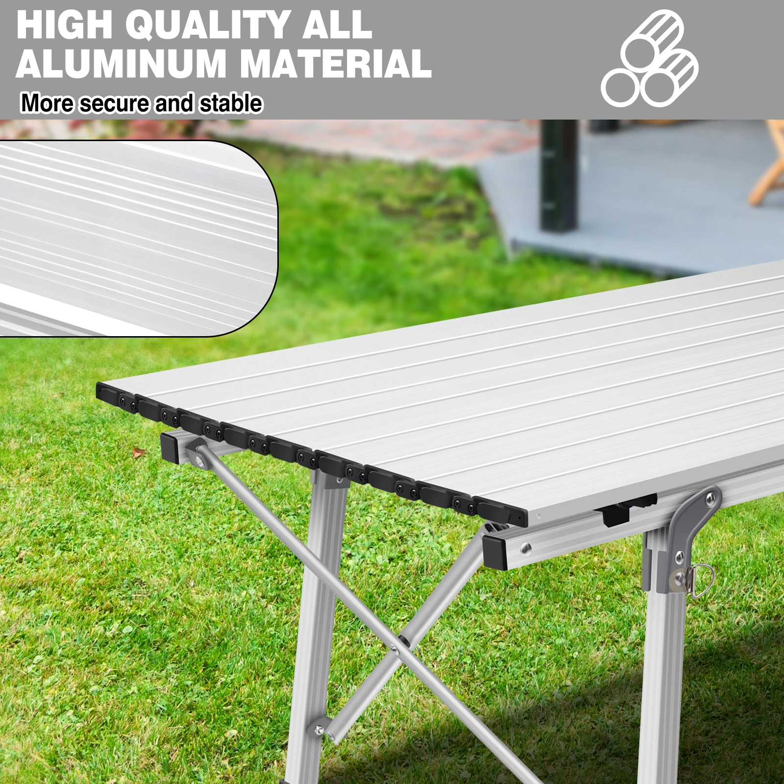 【COMPACT & LIGHTWEIGHT】Roll up table top, folded frame and carry bag included make this outdoor folding tables ultra compact. Made up with all aluminum material, this camping stove table is only 4.5KG for easy transportation.
