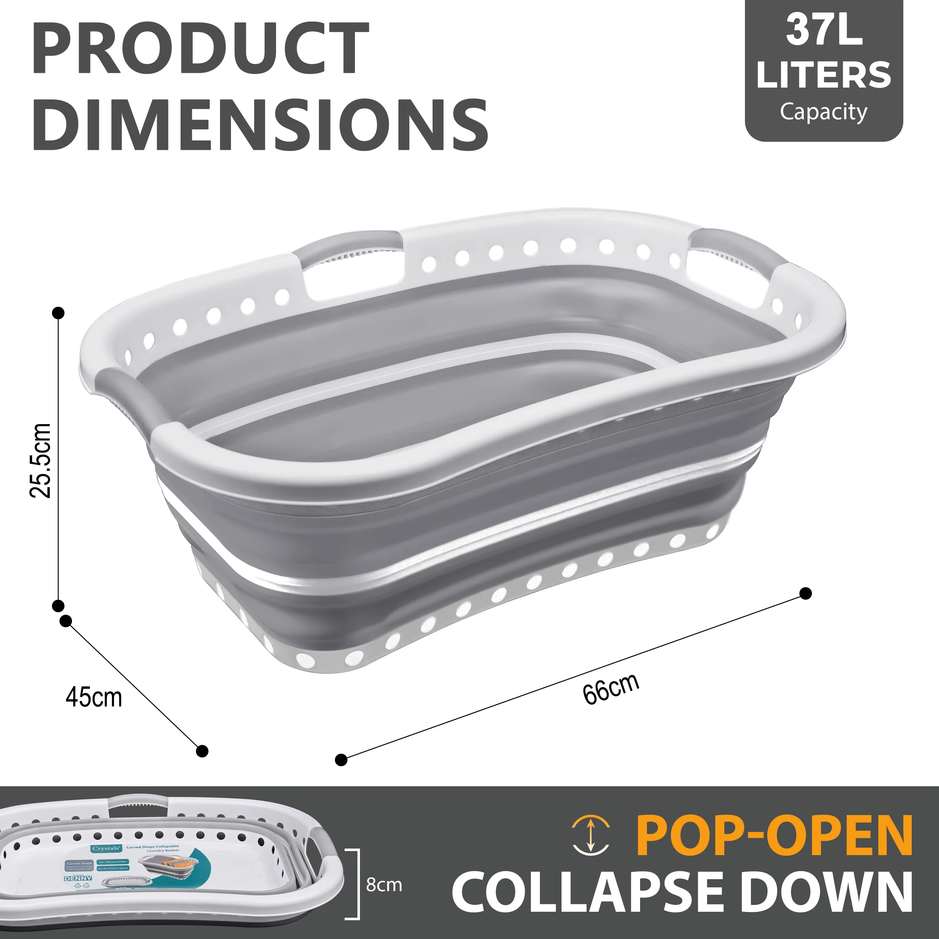 Generous 37L Capacity: Measures approximately 66 x 45 x 25.5 cm, offering plenty of room to carry a full load of laundry in one trip.