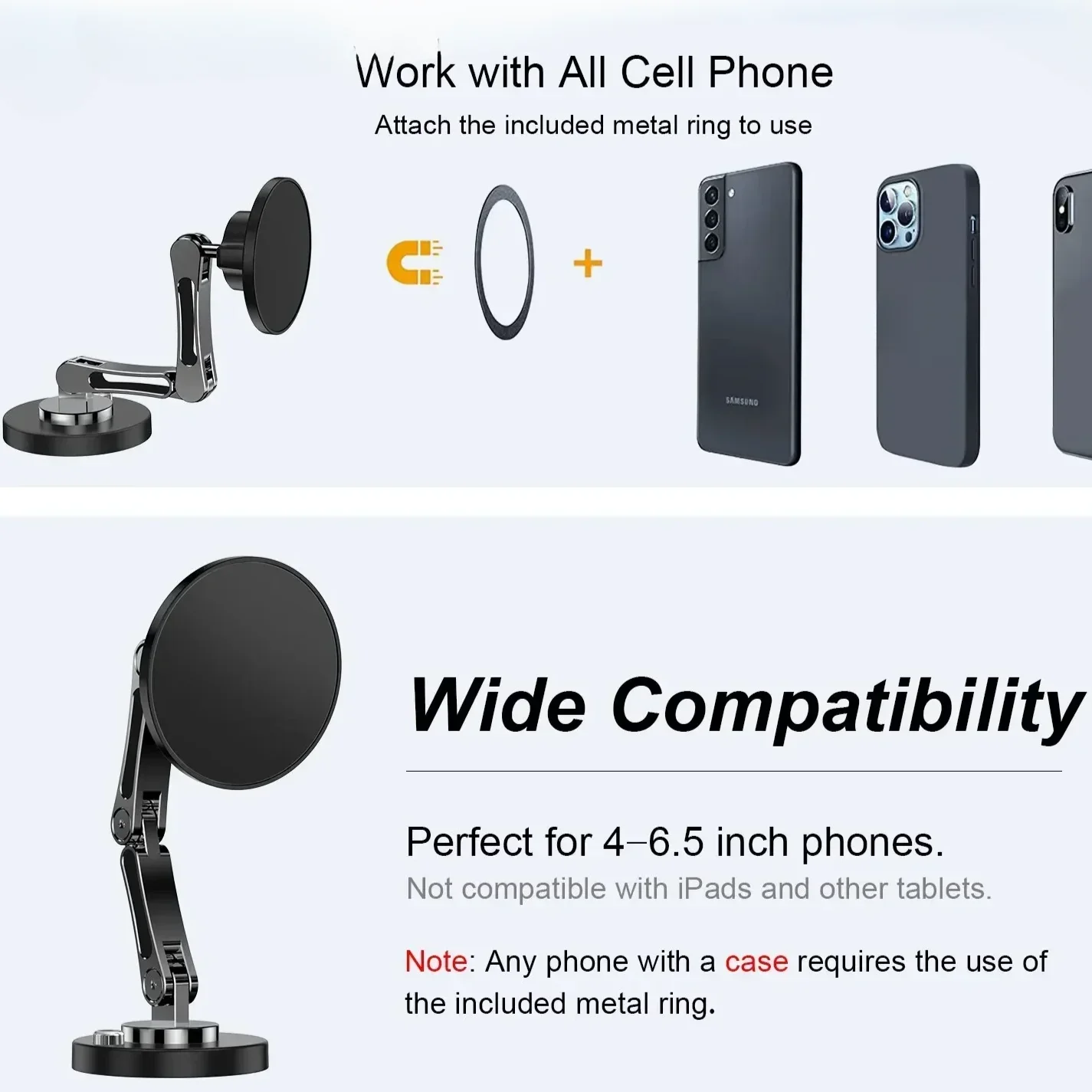[Work for All Phones] We also included two super magnetic plates.The magnetic plate mount easily sticks to the back of devices for easy mounting.Compatible with iPhone15 14 13 12, 12 Pro, 12 mini, 11,11 Pro,11 Pro Max, XS, Xs Max,XR, Samsung Galaxy S10, Note , Sony, Google Pixel, LG, Nokia and more smartphone.