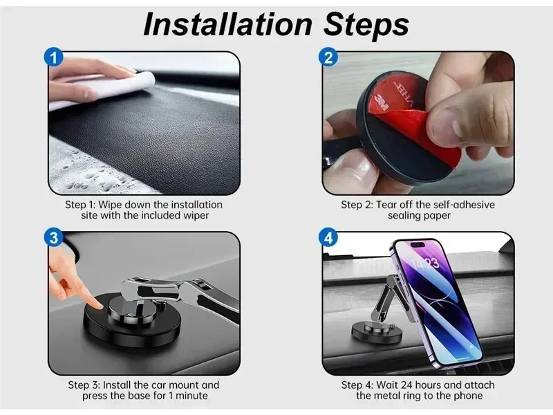 • Easy Installation :With its simple and straightforward installation process, this car phone holder can be easily mounted on any car dashboard or windshield.