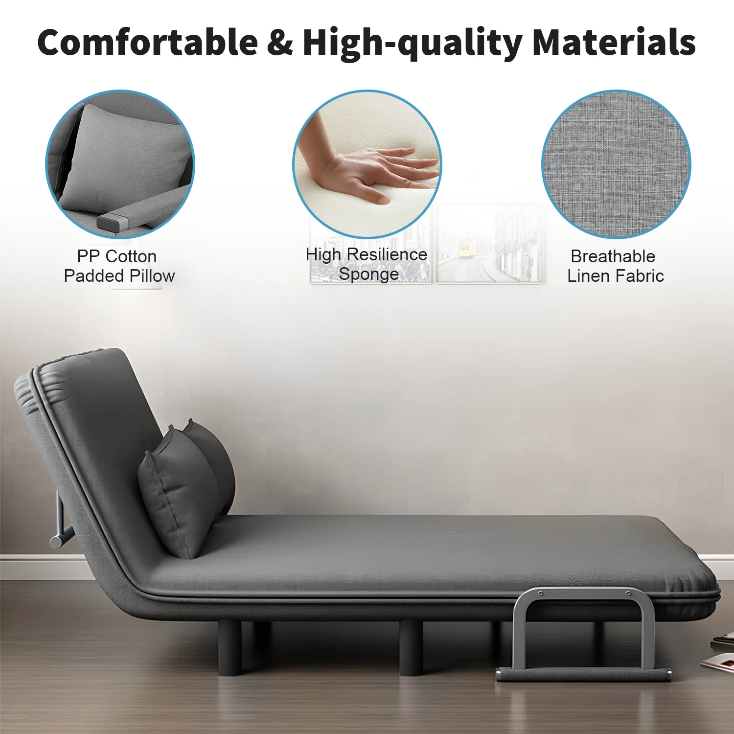 Folding Sofa Bed Couch 3 in 1 Lounge Cotton Chair with 2 Pillows