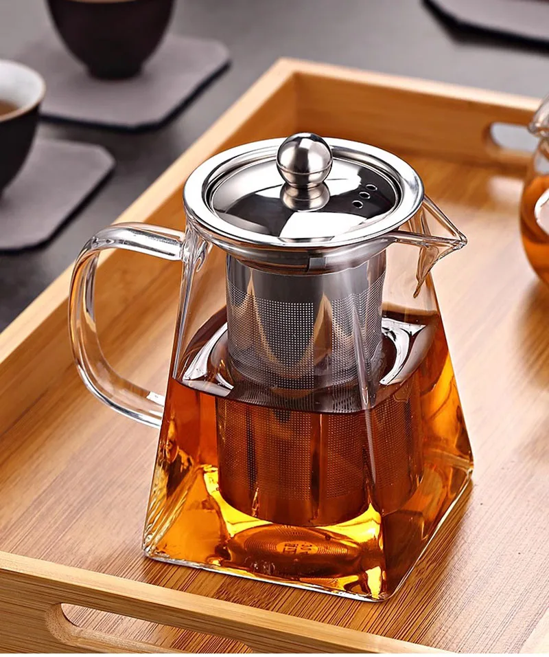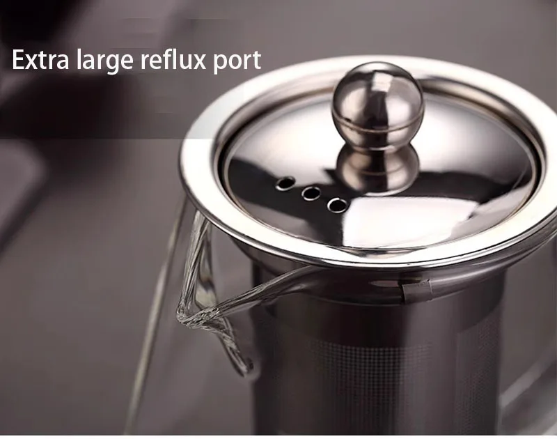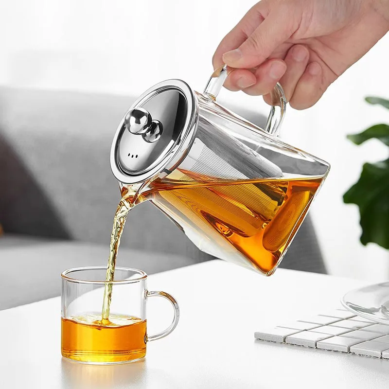 ❤【Removable Infuser】This glass teapot has a removable glass infuser. This infuser is made of 304stainless steel and has an ultra-fine strainer that can filter most teas. You can use this glass tea pot to brew loose leaf tea, tea bags, blooming camellia, fruit tea, herbal tea.
