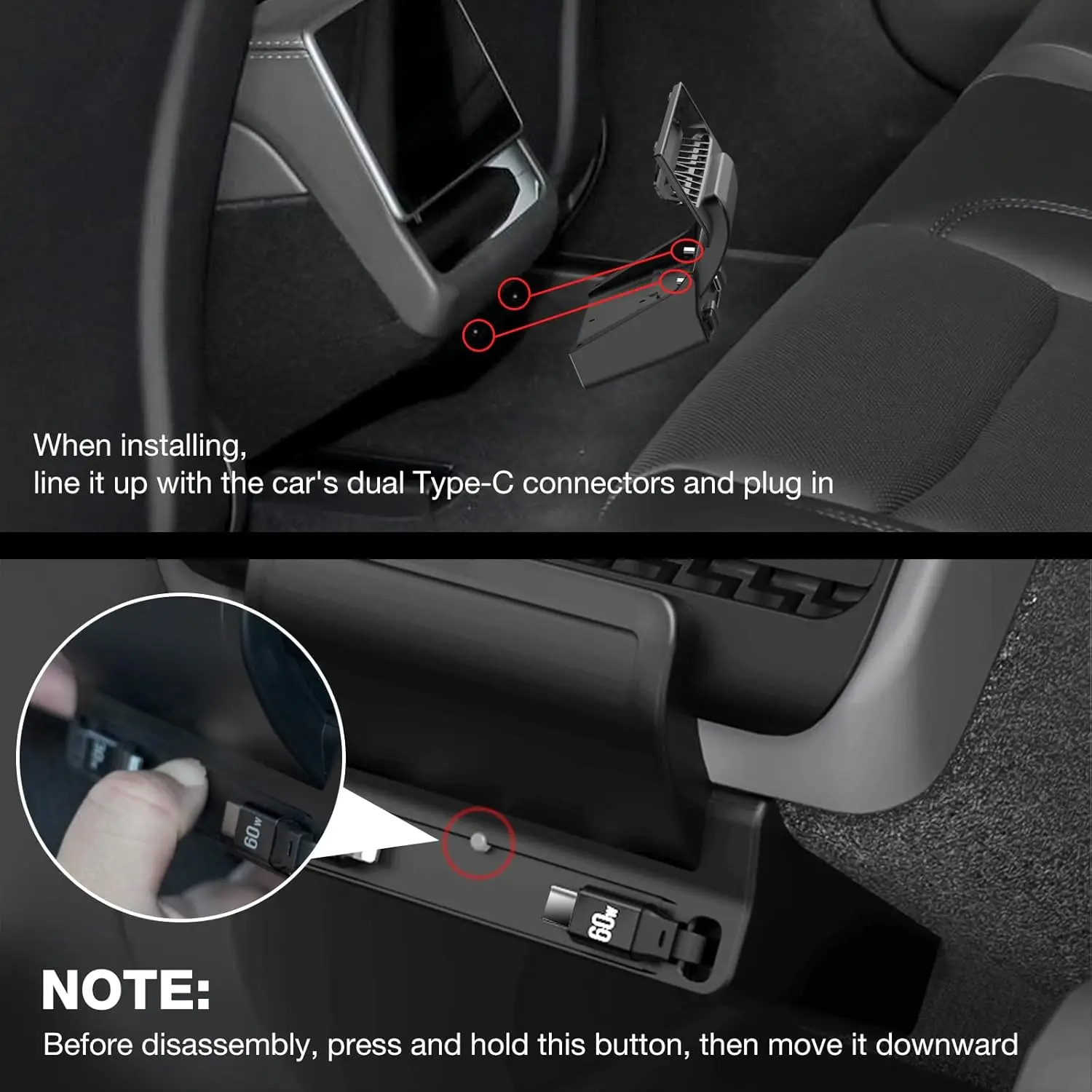 - Easy Installation:The car charger is effortless to install or remove. The Tesla rear vent extension base features a honeycomb airflow design that maintains optimal air conditioning and ventilation performance after installation. (Product link includes detailed instructions and video for reference.)