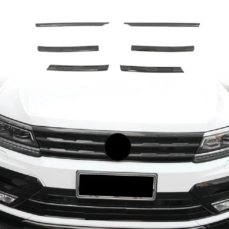 6PCS Car Front Bumper Mesh Center Grille Grill Moulding Strips Cover Trim For VW Tiguan MK2 2016-2021 Chromium Styling