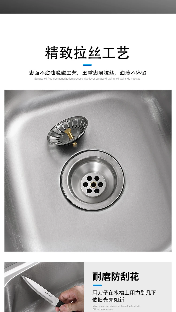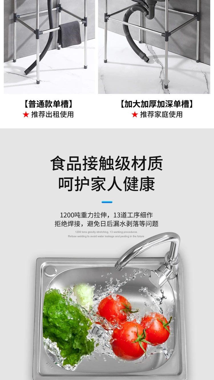 High-End Fabricated Outdoor Free Standing Whole Body Stainless Steel 304 Thicken Wash Basin Kitchen Sink with Stainless Bracket