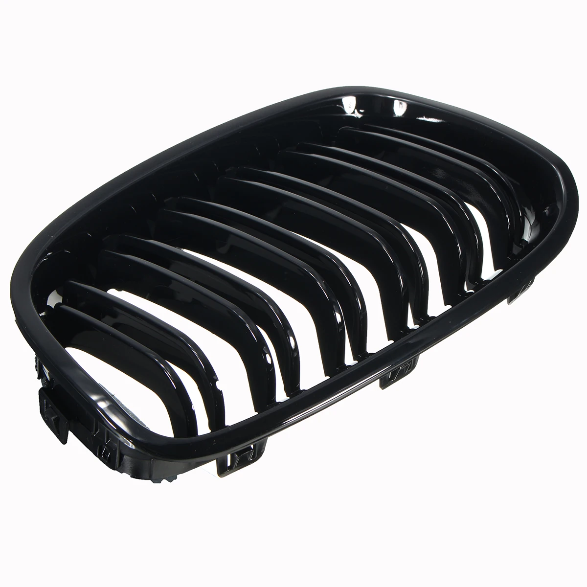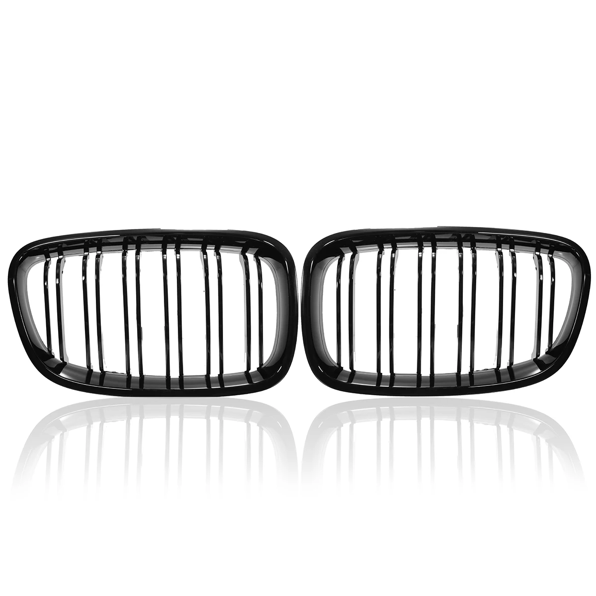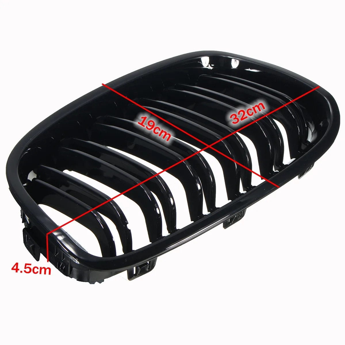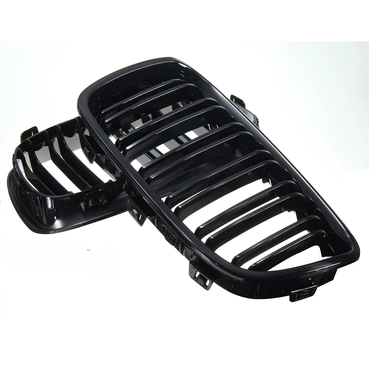 Pair of shiny black front grille double louvre for BMW F20/F21 1er series 2010-2014
