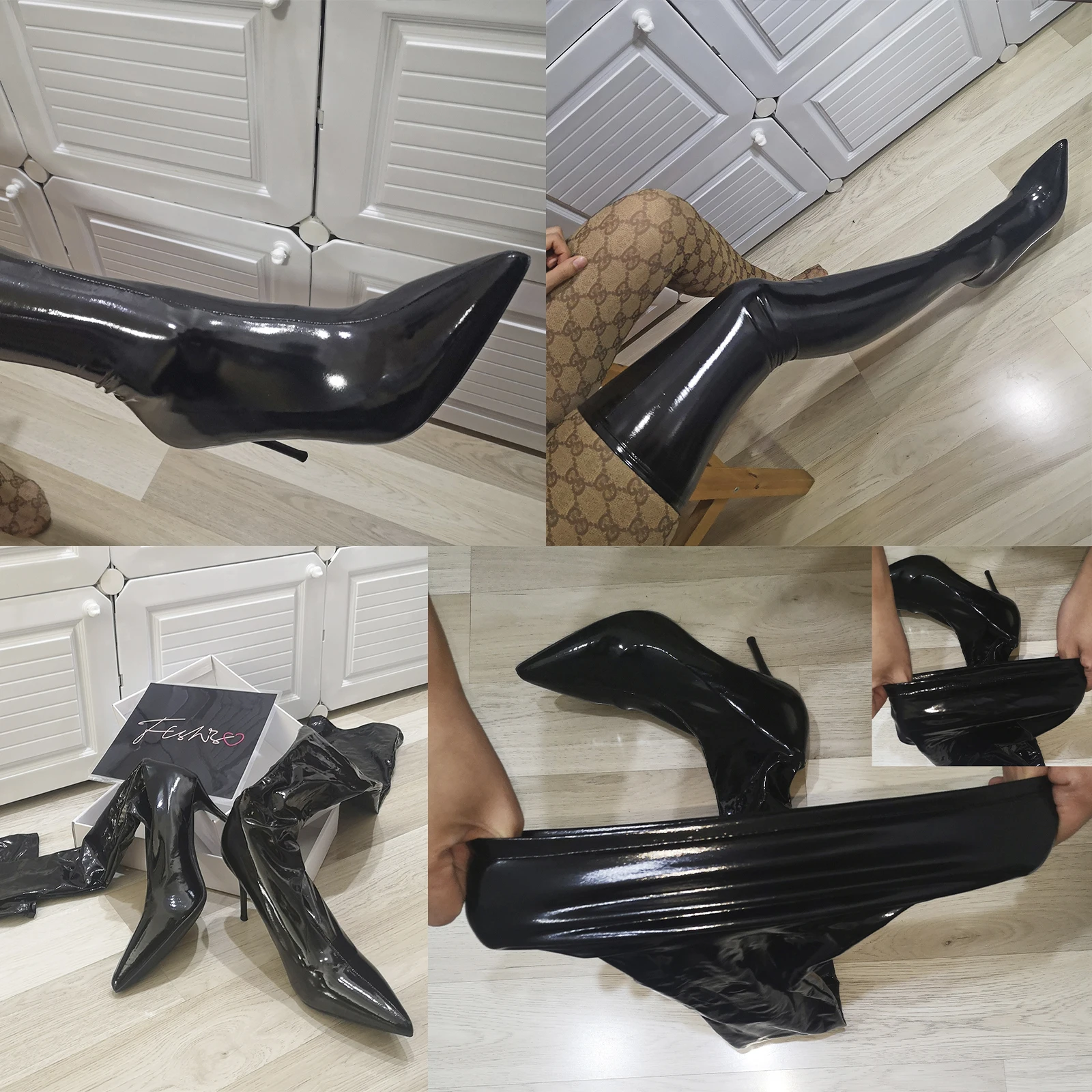 It’s shiny and stretches well, everything is good but the disappointing part is that there are some scratches on the boots.