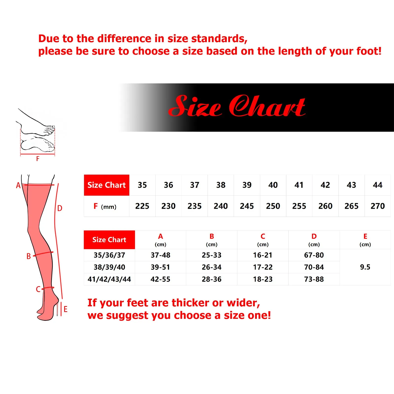 If your foot is thick or wide, we suggest you choose one size larger!