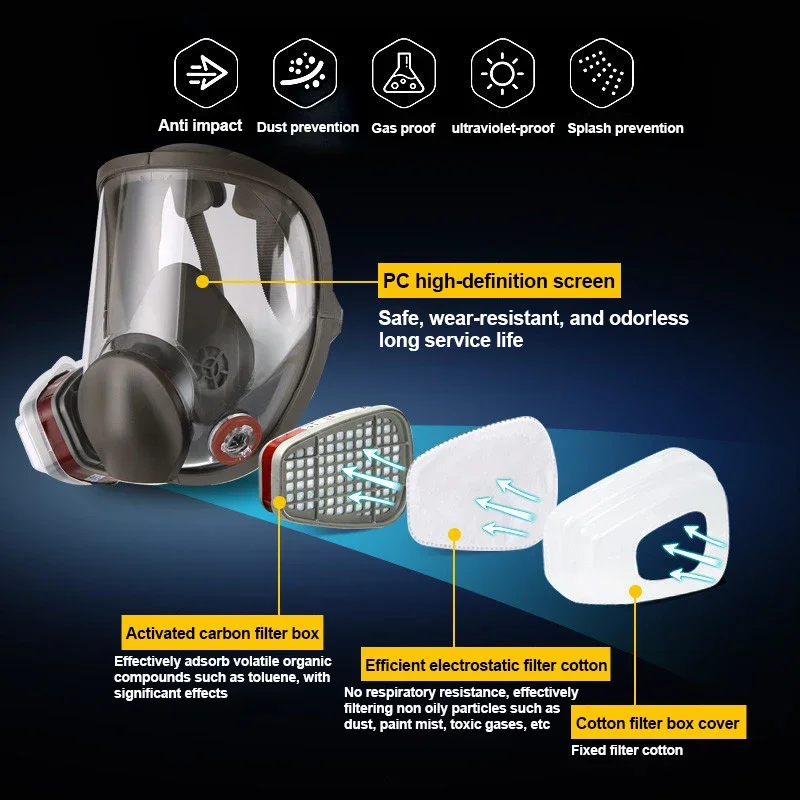 • Safety Work Filter :The Safety Work Filter effectively filters out harmful chemicals, ensuring that the air you breathe is clean and safe.