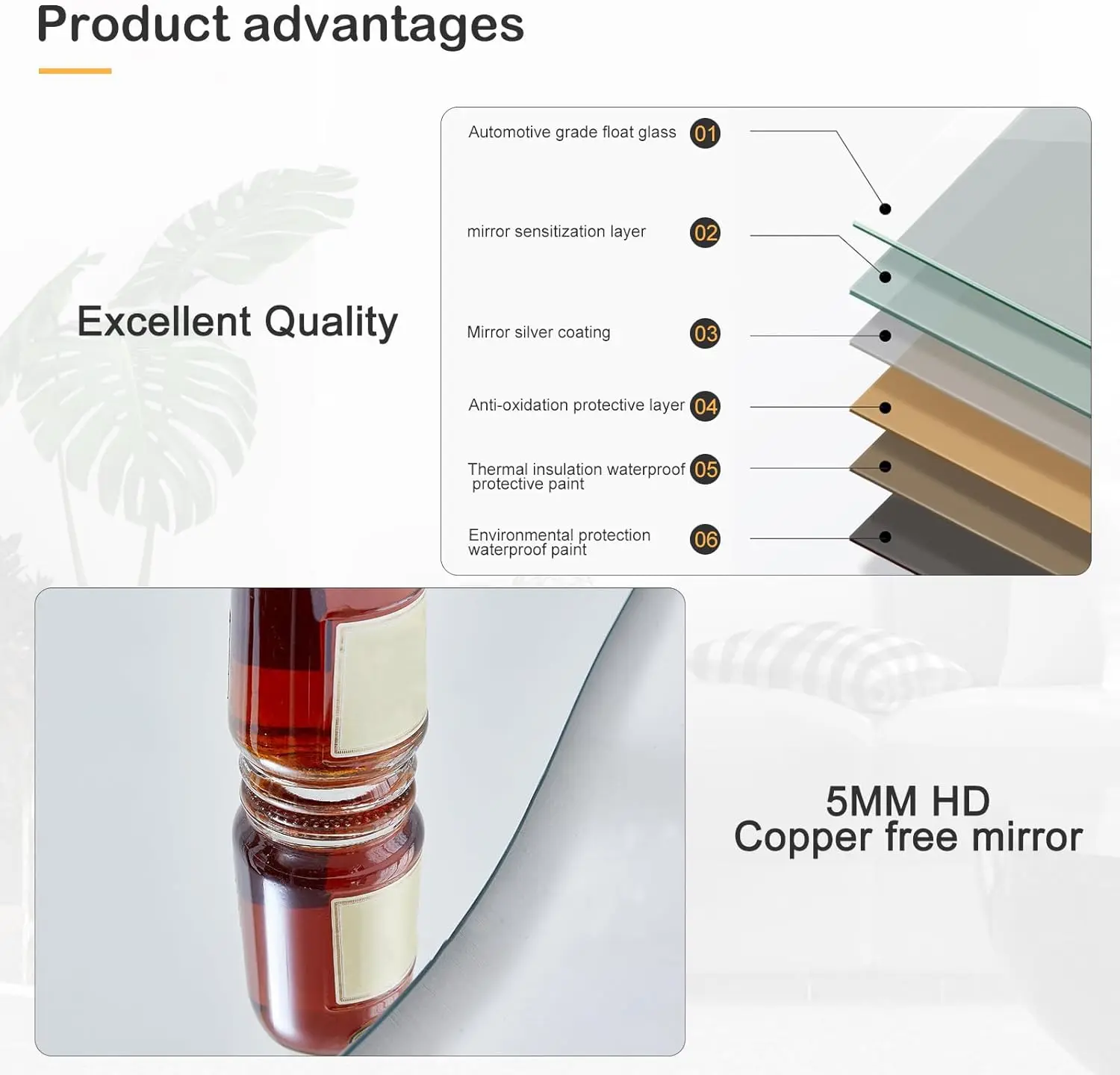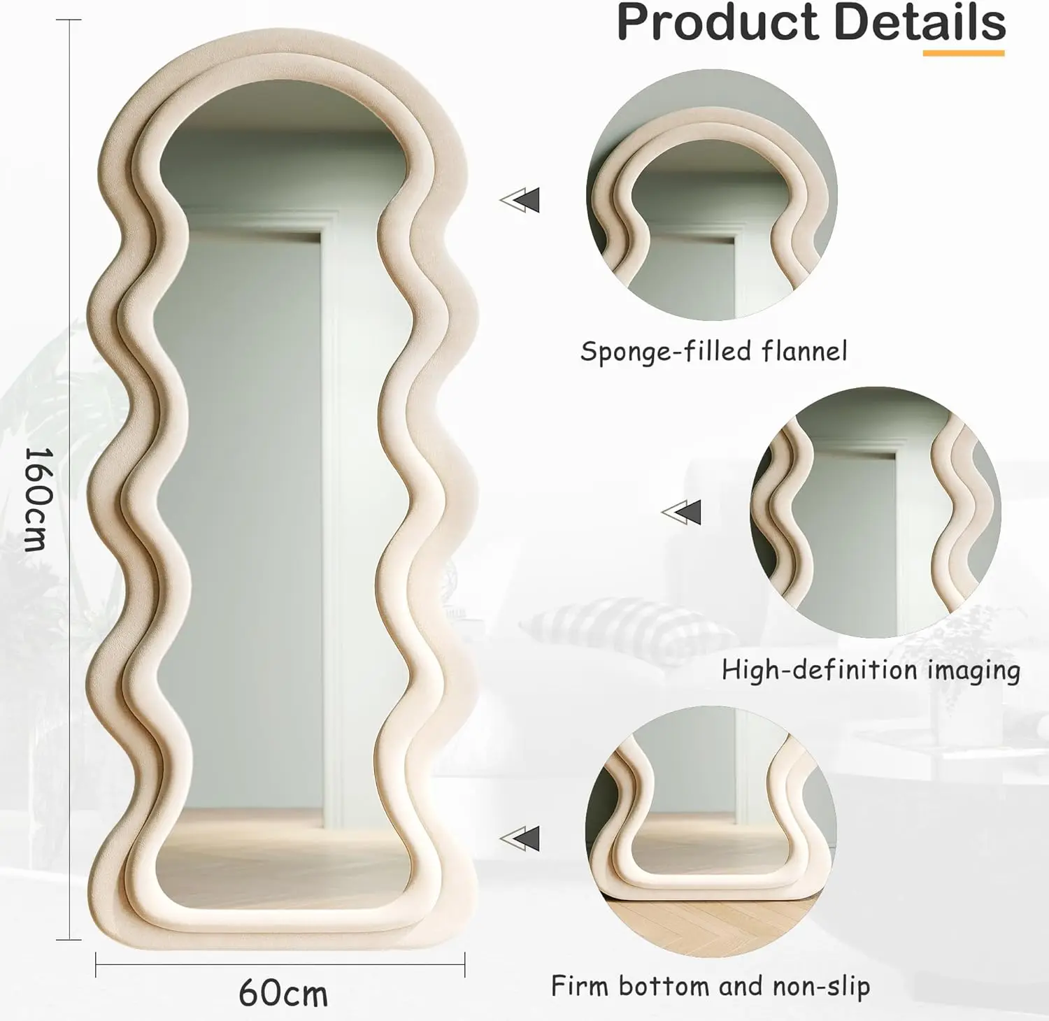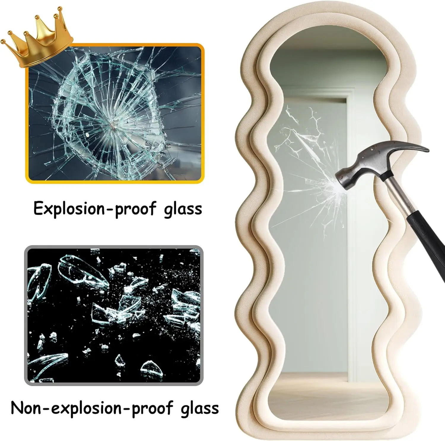 Image Your beauty: Irregular full-length mirror uses ultra-high definition glass with 4-layer embossing technology to restore 100% true imaging without distortion. Back explosion-proof film upgrade, the glass will not splash when broken