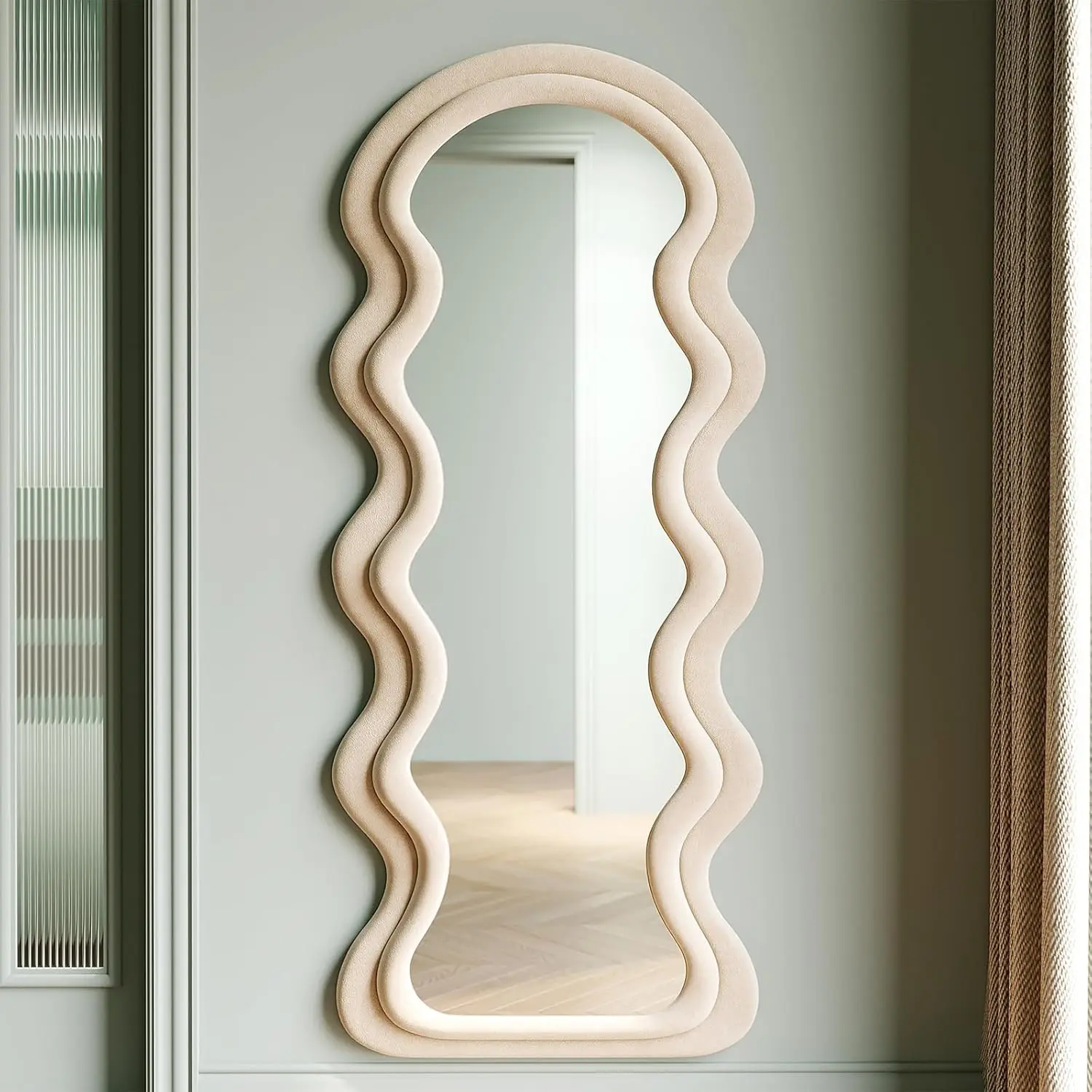 Chic Wavy Design: Our full-length mirror features rounded and wavy body design made of high-quality wood and wrapped in velvet. It adds elegance and sleek to any room