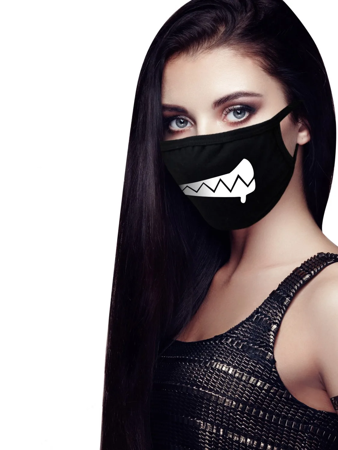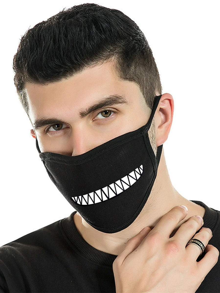 1 Pc Super Cute Smile Expression Creative Mouth Face Mask For Mouth, Unisex Black Funny Personalized Printed Masks For Men And Women, Korean Fashion Riding Dustproof And Breathable Regular Masks, Animation Anime Party Mask, Non Adjustable Size