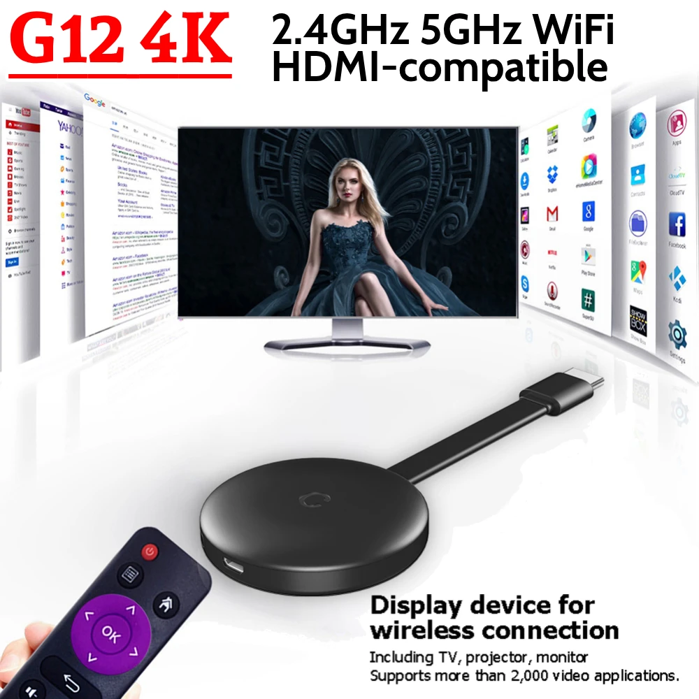 G12 4K HDMI-compatible Wireless Display Dongle 2.4GHz 5GHz WiFi Wireless Display Receiver Adapter for TV Projector Monitor