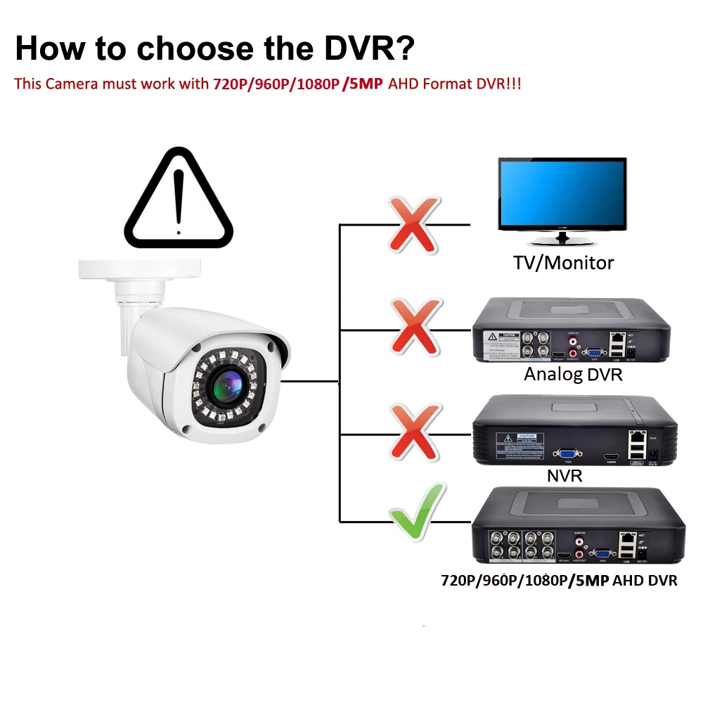 Note:if you buy AHD 5MP camera, make sure your DVR is AHD 5MP DVR.