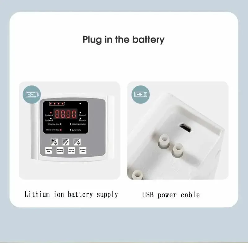 1. Long press the two buttons "watering time" and "interval cycle days" to switch between dual pump/single pump mode