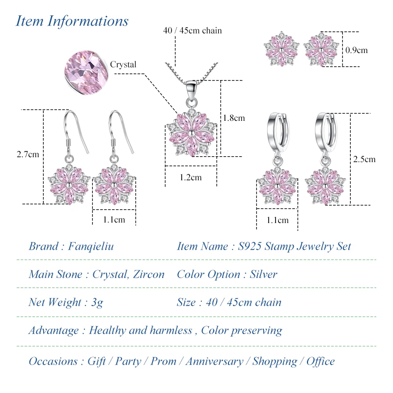 Nice set of earrings, necklace, and chain for girls and women, with beautiful stones. I recommend this product; I hope it will be genuine 925 silver.