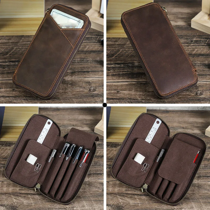 2.Made of high-quality top-grain cowhide, the pencil case is durable;