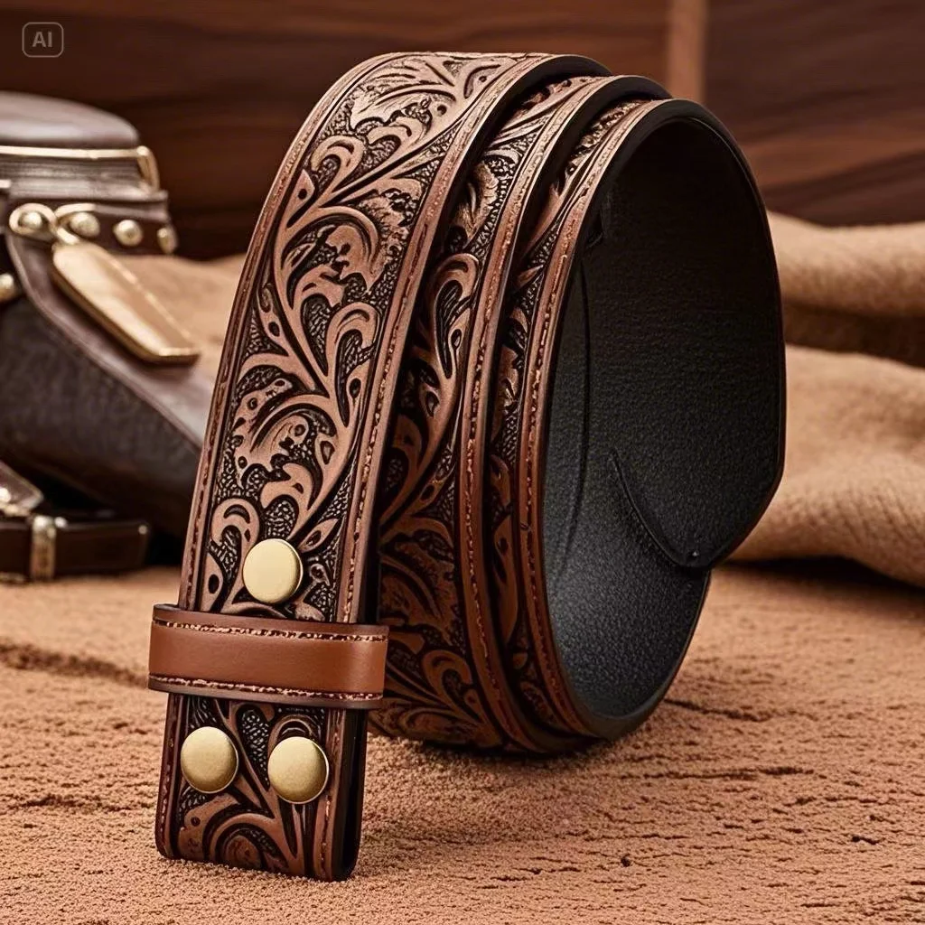 8 reviews for Genuine Leather retro men’s and women’s belt embossed pure cowhide retro nostalgic belts for women versatile jeans Western style